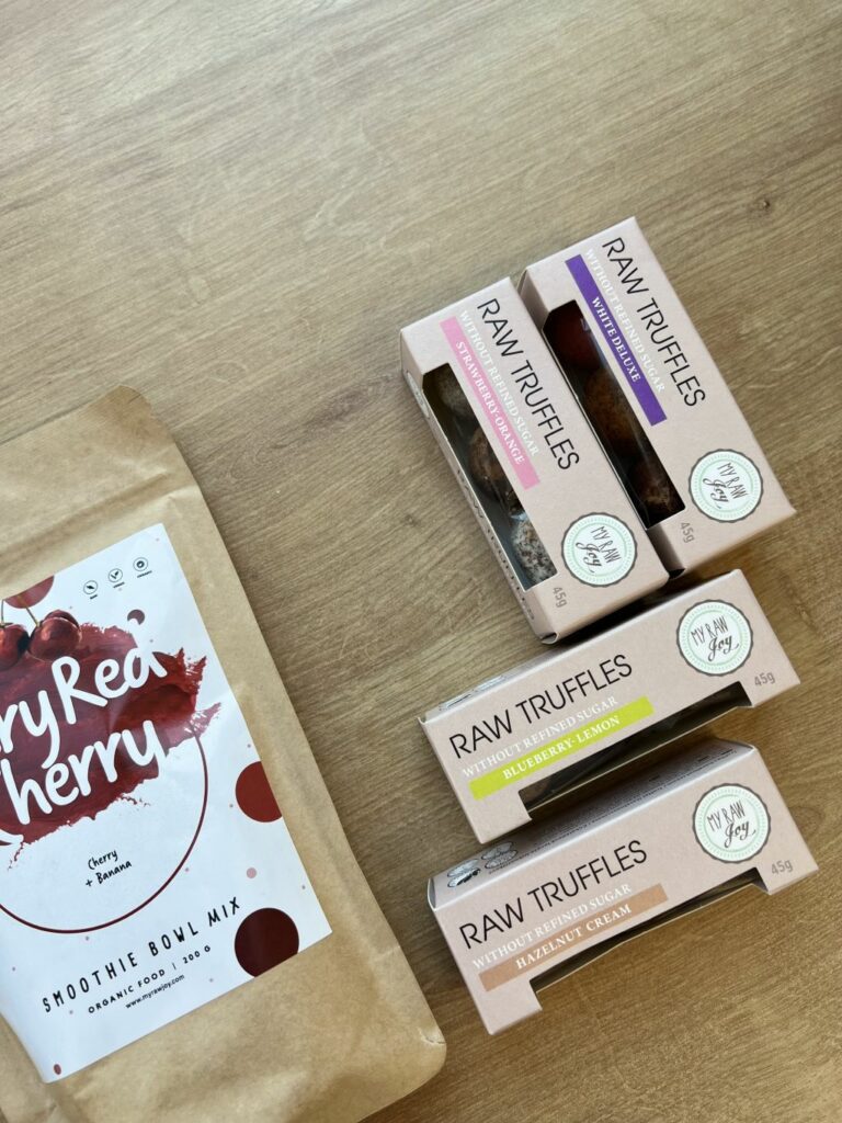 V Lekárni na námestí a Lekárni Západ nájdete aj dobroty od My Raw joy, ktoré sú skutočnou radosťou na jazyku. Sú raw, vegánske, bezlepkové a obsahujú kvalitné ingrediencie. Vyzdvihnúť môžeme napríklad lanýžové pralinky a čokoládové guličky, raw pralinkové tyčinky s krémovou náplňou alebo aj smoothie bowl zmesi, ktoré sú ideálne na začiatok dňa.