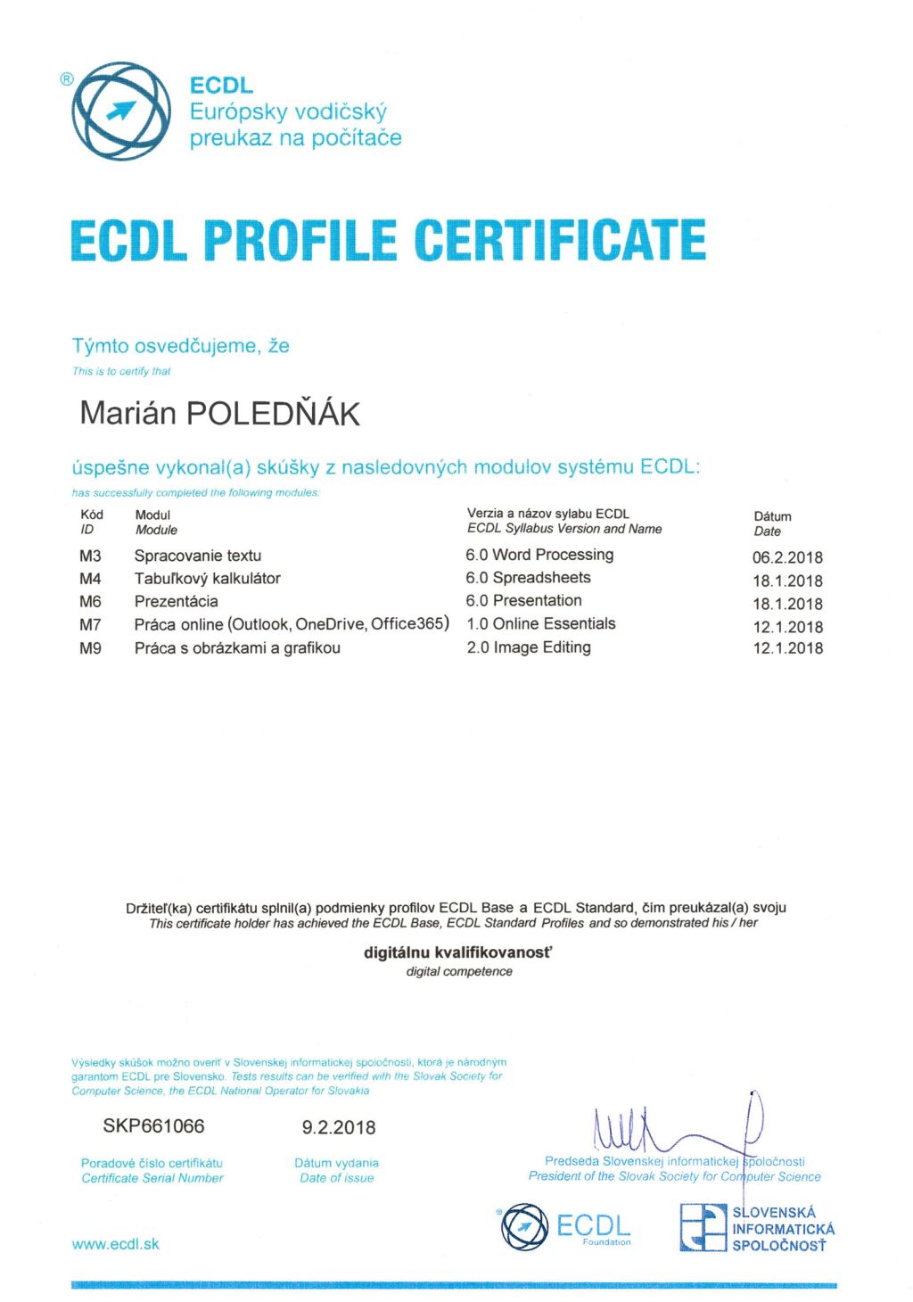 Tento certifikát potvrdzuje digitálnu odbornosť, ktorá je podmienkou na prijatie do zamestnania u väčšiny zamestnávateľov na Slovensku.