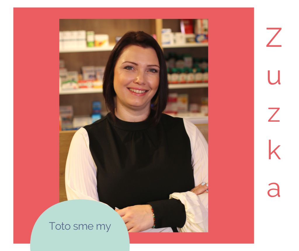 Zuzka je šéfka, aj keď ona stále povie: "Som vaša kolegyňa." Zabezpečuje chod troch lekární: Lekárne Západ, Lekárne na námestí a Lekárne Kokava. Robí všetko pre to, aby zákazník našiel to, čo potrebuje. Nestará sa len o lieky, ale snaží sa priniesť do Rimavskej Soboty aj niečo nové. Zamilovala si bio, eko produkty a tak si v týchto lekárňach prídu na svoje aj podobní nadšenci bio produktov slovenskej a českej produkcie. Má naozaj obdivuhodný všeobecný rozhľad, zaujíma sa o trendy v lekárnictve, rada číta knihy, preferuje zdravý životný štýl a zdravé jedlá. Jej chuť a snaha byť stále lepšia ju posúva vpred.