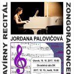 Aj druhý pracovný deň, teda utorok (10. októbra), sa budete môcť kultúrne vyžiť. Postará sa o to klavírny recitál Jordany Palovičovej. V divadelnej sále Domu kultúry (vchod A, od Kauflandu) od 19:00 hod. odznejú skladby E. Suchoňa, F. Schuberta, C. Debussyho a I. Szeghyho. Koncert je súčasťou 37. ročníka Hudobnej jesene v Rimavskej Sobote, ktorú podporil Fond na podporu umenia. Vstupné: 2€ / 1€ pre členov KPH. Členovia Kruhu priateľov hudby môžu uhradiť členský príspevok na rok 2017 vo výške 2 € na koncerte.