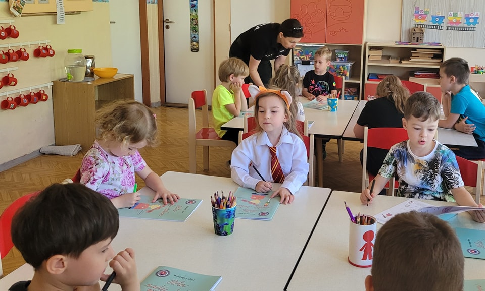 Policajtka z Rimavskej Soboty deťom jednoduchým spôsobom priblížila, aké úlohy plnia policajti počas svojej služby. Hovorila tiež o tom, že medzi povinnosti policajta patrí napríklad dozerať na bezpečnosť a plynulosť cestnej premávky.