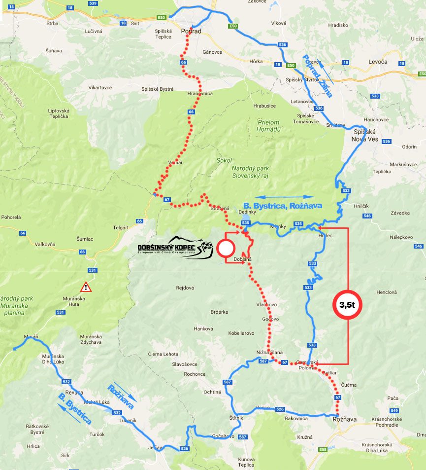 “Dôjde k úplnému obmedzeniu cestnej premávky v celej dĺžke na ceste I/67 a doprava bude presmerovaná na cestu II/535 a II/533 smerom na Dobšinský kopec – Mlynky, križovatka ciest II/535 a II/533 – Hnilec – Gemerská Poloma, a to v dňoch 17. 7. a 18. 7. v čase od 07:00 hod. do 20:00 hod,” napísali policajti na Facebooku.