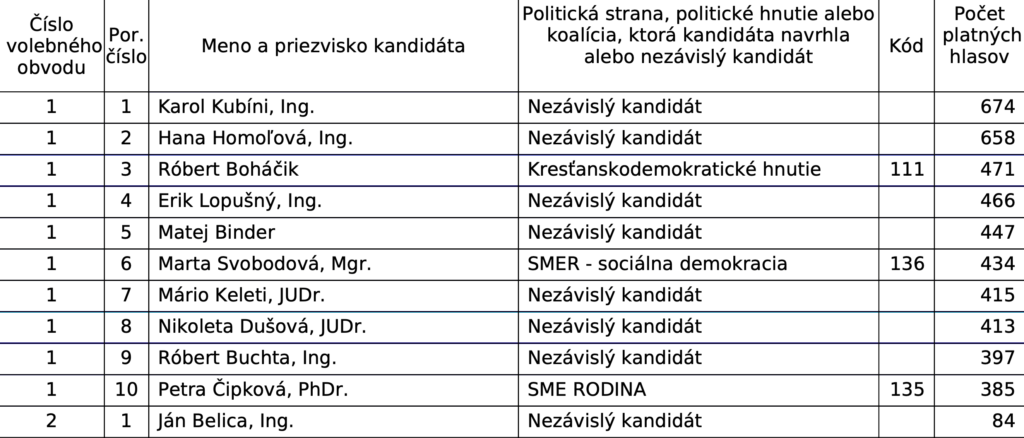 Druhá skončila Hana Homoľová, ktorú volilo 591 ľudí. Tretiu priečku obsadil Matej Binder s 174 hlasmi. Posledný skončil Pavel Karas, dôveru mu prejavilo 67 voličov.