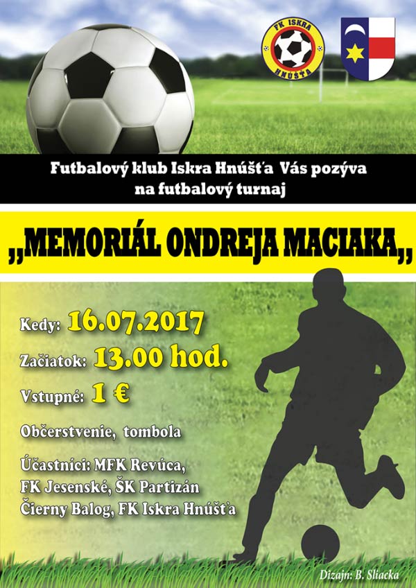 Rovnako ani nedeľu, 16. júla, nemusíte tráviť medzi „štyrmi stenami“. V Hnúšti to bude žiť športom. Uskutoční sa tam futbalový turnaj „Memoriál Ondreja Maciaka“. Od 16:00 hod. si svoje sily zmerajú futbalisti z Hnúšte, Jesenského, Revúcej i Čierneho Balogu.