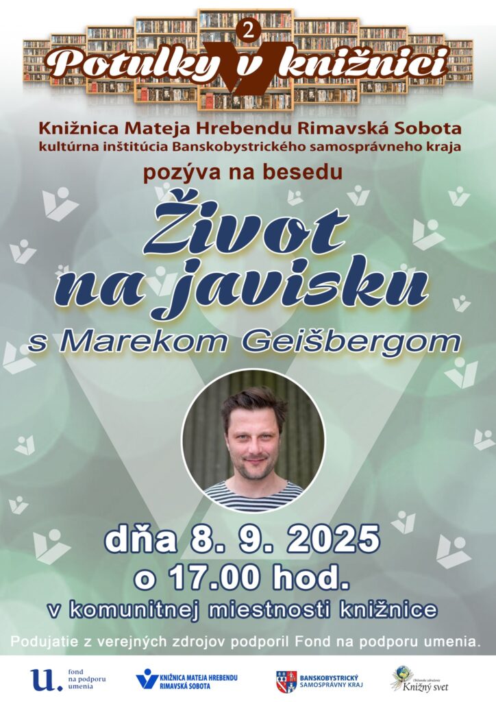Knižnica Mateja Hrebendu v Rimavskej Sobote pripravila pre verejnosť ďalšie zaujímavé podujatie. Tentokrát sa môžete stretnúť s obľúbeným slovenským hercom Marekom Geišbergom, ktorý príde porozprávať o fascinujúcom svete divadla, filmu a herectva.