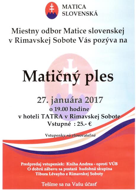 Ako je už známe, nepísaným pravidlom je, že víkend začína už v piatok. To platí aj pre tie nadchádzajúce voľné dni. Dnes, 27. januára, sa môžete zabaviť na Plese Miestneho odboru Matice slovenskej Rimavská Sobota, ktorý sa uskutoční v Hoteli Tatra. Zábava je však pripravená aj pre tých menších i najmenších. V Kultúrnom dome v Kokave nad Rimavicou nebude núdza o detské fašiangové masky. A ako prezradili organizátori, tie najkrajšie masky si odnesú odmenu.