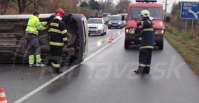 Na vjazde do Pavloviec v smere od Rimavských Janoviec dostalo auto na mokrej vozovke šmyk, skončilo prevrátené na ceste a blokovalo jeden jazdný pruh. Nehodu bez zranení na ceste II. triedy nahlasovali rimavskosobotským hasičom včera predpoludním. Ako Rimava.sk ďalej informoval Erik Piater z Krajského riaditeľstva HaZZ v Banskej Bystrici, išlo o havarovaný malý nákladný automobil Fiat Doblo, z ktorého unikali prevádzkové kvapaliny, a ktoré po šmyku a následnom náraze do priekopy zostalo prevrátené na boku. „Vodič sa v čase nášho príchodu už vo vozidle nenachádzal,“ uviedol Piater. Ako ďalej spomenul, príslušníci HaZZ vymedzili priestor zásahu a vykonali protipožiarne opatrenia na havarovanom aute. Po zadokumentovaní nehody ho prevrátili na kolesá a pomohli naložiť na vozidlo odťahovej služby. Polícia prípad neeviduje ako dopravnú nehodu. Podľa slov banskobystrickej policajnej hovorkyne Petry Vaškovej išlo o škodovú udalosť.
