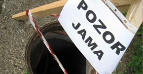 Včera popoludní pracovníci Domova dôchodcov a domova sociálnych služieb (DD a DSS) zabezpečovali diery pri internáte. Podľa nich v okolí chýba až 17 kanalizačných poklopov. Miesta označili drevenými kolíkmi, omotanými páskou s nápisom „pozor jama“.