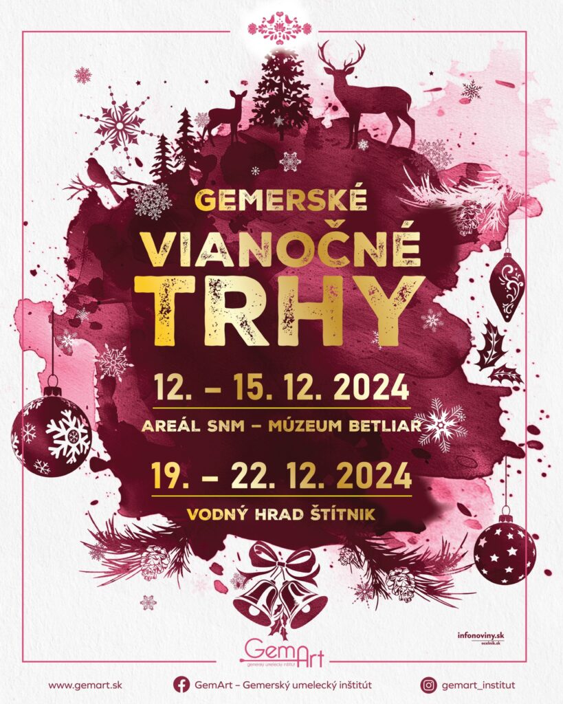 Trhy sa uskutočnia v dvoch termínoch. Prvý od 12. do 15. decembra v areáli kaštieľa Betliar a hradu Krásna Hôrka a druhý od 19. do 22. decembra na hrade v Štítniku. Čaká nás neopakovateľná vianočná atmosféra, ktorá spojí historickú krásu Gemera so sviatočnými tradíciami.