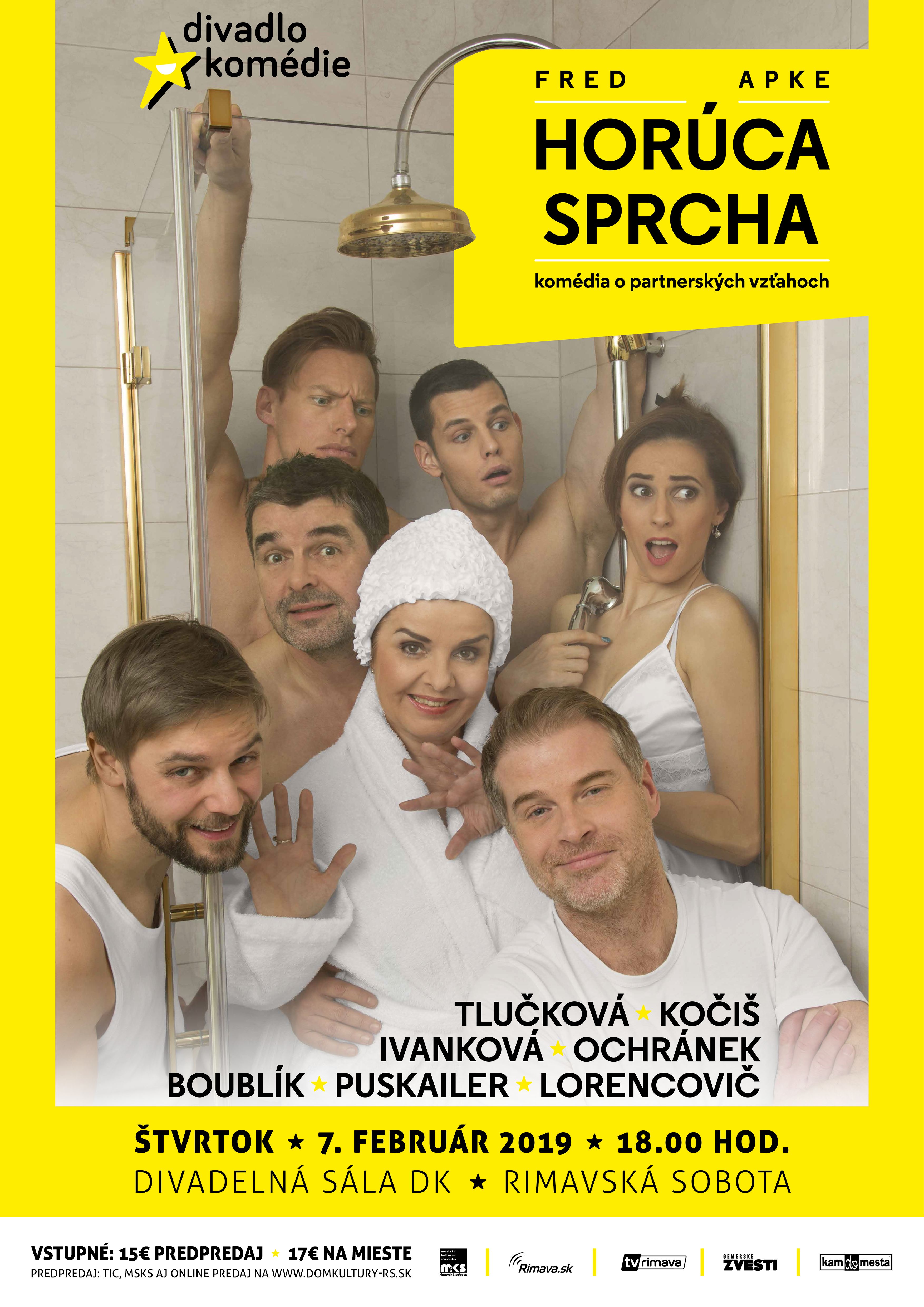 Do Rimavskej Soboty zavíta Divadlo Komédie so vzťahovou komédiou Horúca sprcha. Predstavenie je naplánované na štvrtok, 7. februára o 18.00 hod. v divadelnej sále Domu kultúry. Vstupné: 15 eur predpredaj v MsKS a TIC a cez Ticketportal / 17eur na mieste. On je architekt. Ona terapeutka, alebo skôr televízna hviezda TV-šou, ktorej vzácne psychologické rady zachránili už nejedno manželstvo. Ale ich vlastné manželstvo je práve v troskách. Aký paradox! Čo teda najviac chýba ku šťastiu špecialistke na riešenie manželských problémov? Tolerancia a porozumenie. Vydarený vzťah! Ako manželia žijú už niekoľko mesiacov odlúčene a práve vyrazili na svoju poslednú spoločnú cestu. Chcú predať dom v Španielsku. Unavení dlhou cestou sa zastavia na jednu noc v malom hotelíku niekde na juhu Francúzska. Hotel je však v rekonštrukcii. V jedinej voľnej izbe sa nachádza manželská posteľ a v kúpeľni tečie len horúca voda. Nezostáva nič iné, len si vypiť pohár vína, aby sa spoločná noc dala v pokoji prežiť. Obaja manželia sa snažia byť k sebe korektní, nezádrapčiví, nekonfliktní… Ale príliš sa im to nedarí…Všetci hrdinovia tejto komédie sú akoby vystrihnutí z pomyselnej talkšou. Ale pozor, na konci všetko dobre dopadne! Ako? To neprezradíme...