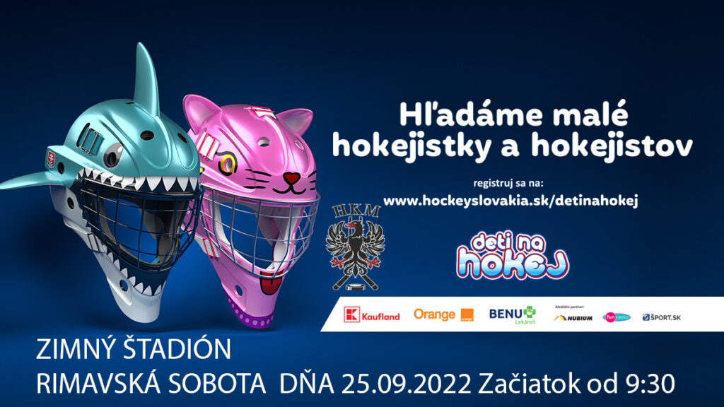 Chcete, aby sa vaše dieťa začalo venovať hokeju? Alebo aby sa zabavilo športom? Prihláste ho pomocou formulára na tomto odkaze. Podujatie sa uskutoční 25. septembra (v nedeľu) o 9:30 hod. na zimnom štadióne v Rimavskej Sobote a je určené pre deti od 4 do 9 rokov, v prípade dievčat do 10 rokov. Vstup je zdarma.
