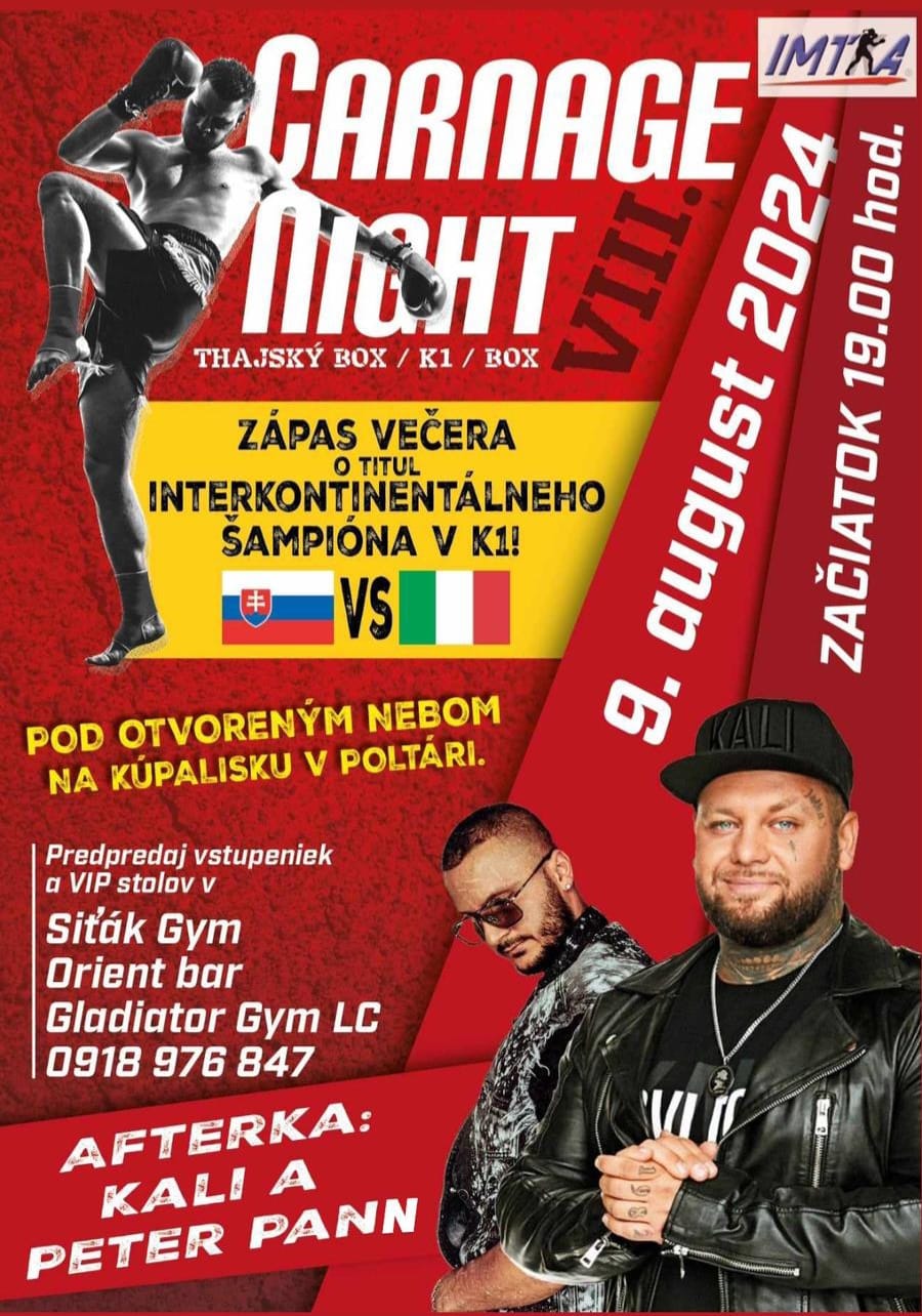 POLTÁR – Primátor Poltára Peter Sitor 9. augusta zabojuje s talianskym športovcom v areáli poltárskeho kúpaliska o titul medzinárodného šampióna v K1. Počas populárneho podujatia Carnage night sa vráti do súťažného ringu a postaví sa zoči-voči súperovi z Talianska. Zároveň ide o jedno z najväčších športových, hudobných a medzinárodných podujatí v Poltári.