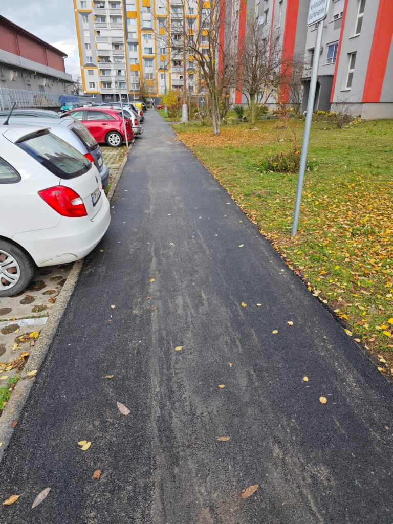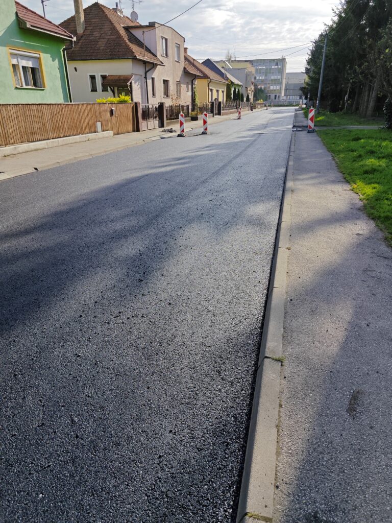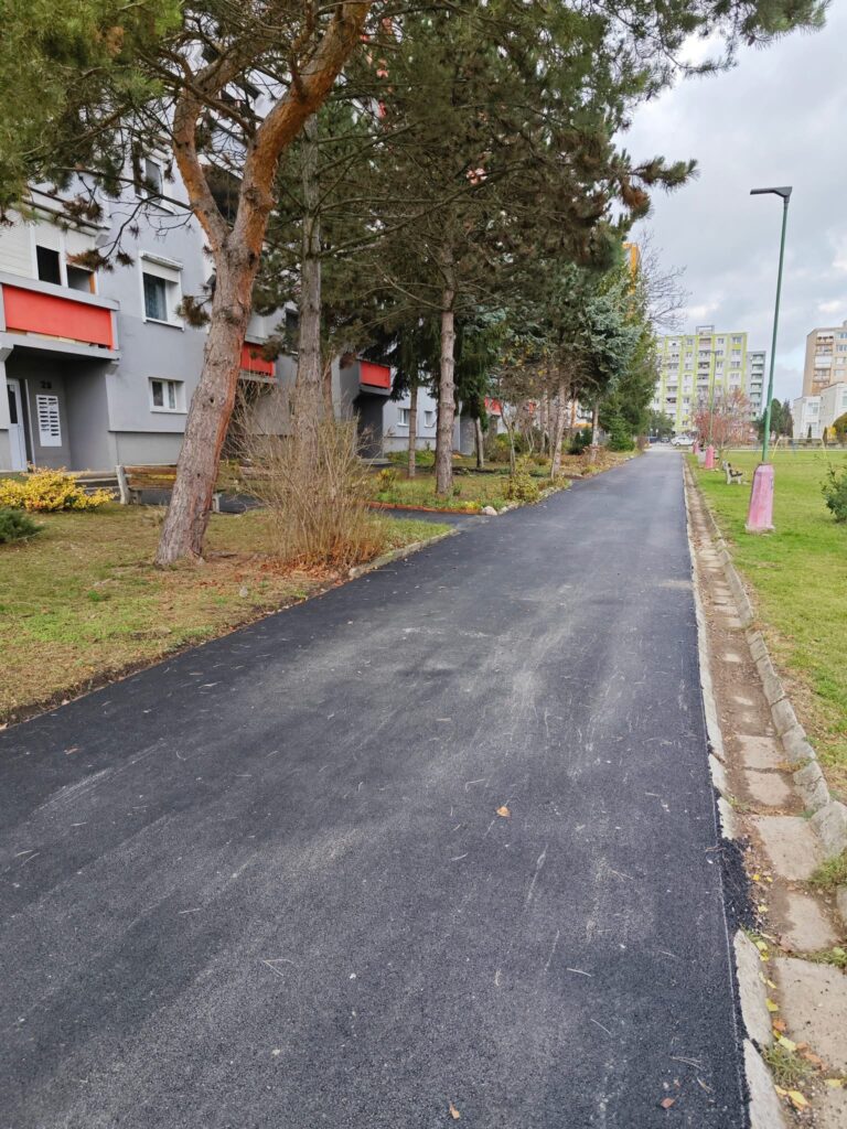 • obnovu krytu vozovky na ulici Družstevnej (financované z NFP vo výške 92 192 €)