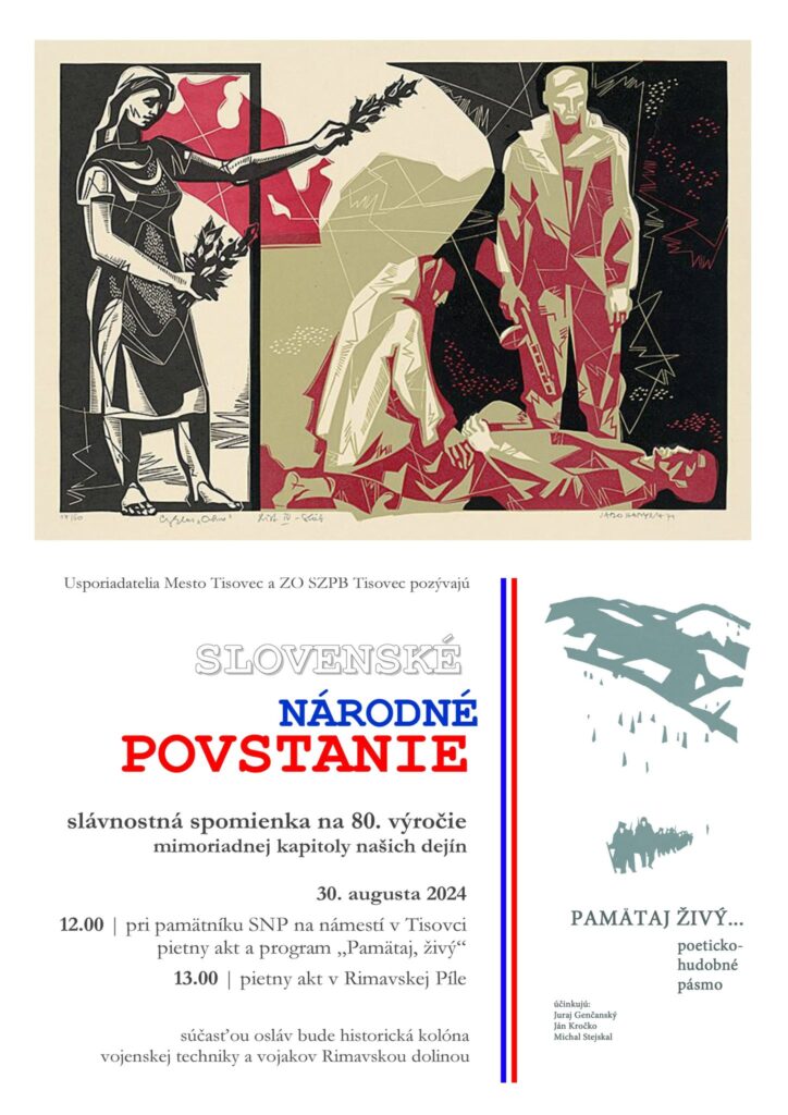Tisovec k historickým udalostiam pripravuje pietny akt pri pamätníku SNP na tisovskom námestí sprevádzaný programom 30. augusta. S rovnakou ceremóniou sa presunú aj do mestskej časti Rimavská Píla.