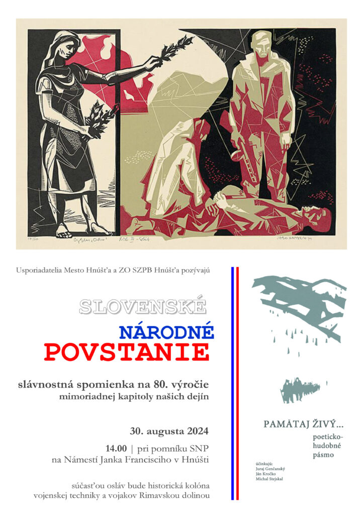 V Hnúšti si tento významný medzník pripomenú 30. augusta o 14:00 hodine pri pomníku SNP na Námestí Janka Francisciho historickou kolónou a programom s názvom Pamätaj živý, s pietnym aktom kladenia vencov.