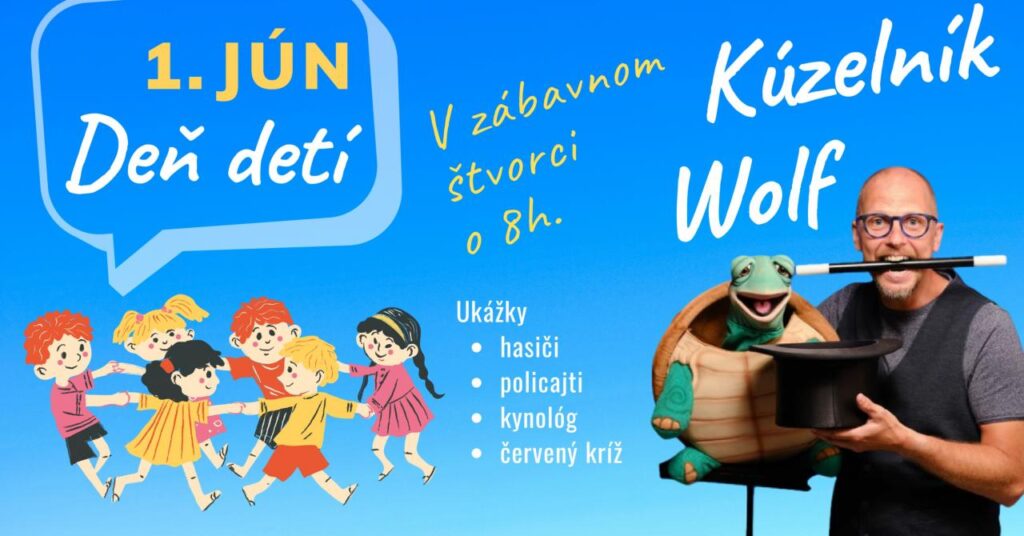 V takzvanom "zábavnom štvorci" v Poltári štartuje na Deň detí program už od 8:00, kedy podujatie otvorí kúzelník Wolf. Najmenší si môžu pozrieť aj ukážky práce hasičov, policajtov, kynológa a červeného kríža.