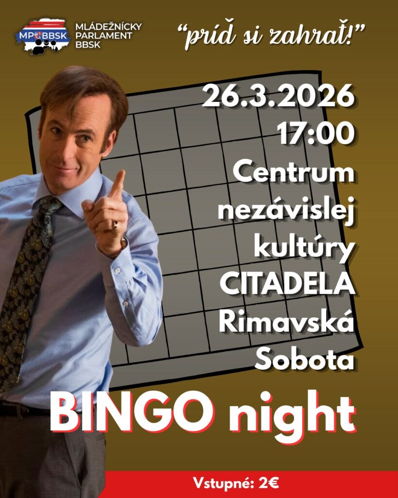 Ešte predtým, vo štvrtok 26. marca o 17:00, ožije Citadela netradičným bingo večerom, ktorý pripravuje Mládežnícky parlament BBSK. Podujatie sľubuje uvoľnenú atmosféru, možnosť stretnúť nových ľudí a samozrejme aj šancu niečo vyhrať.