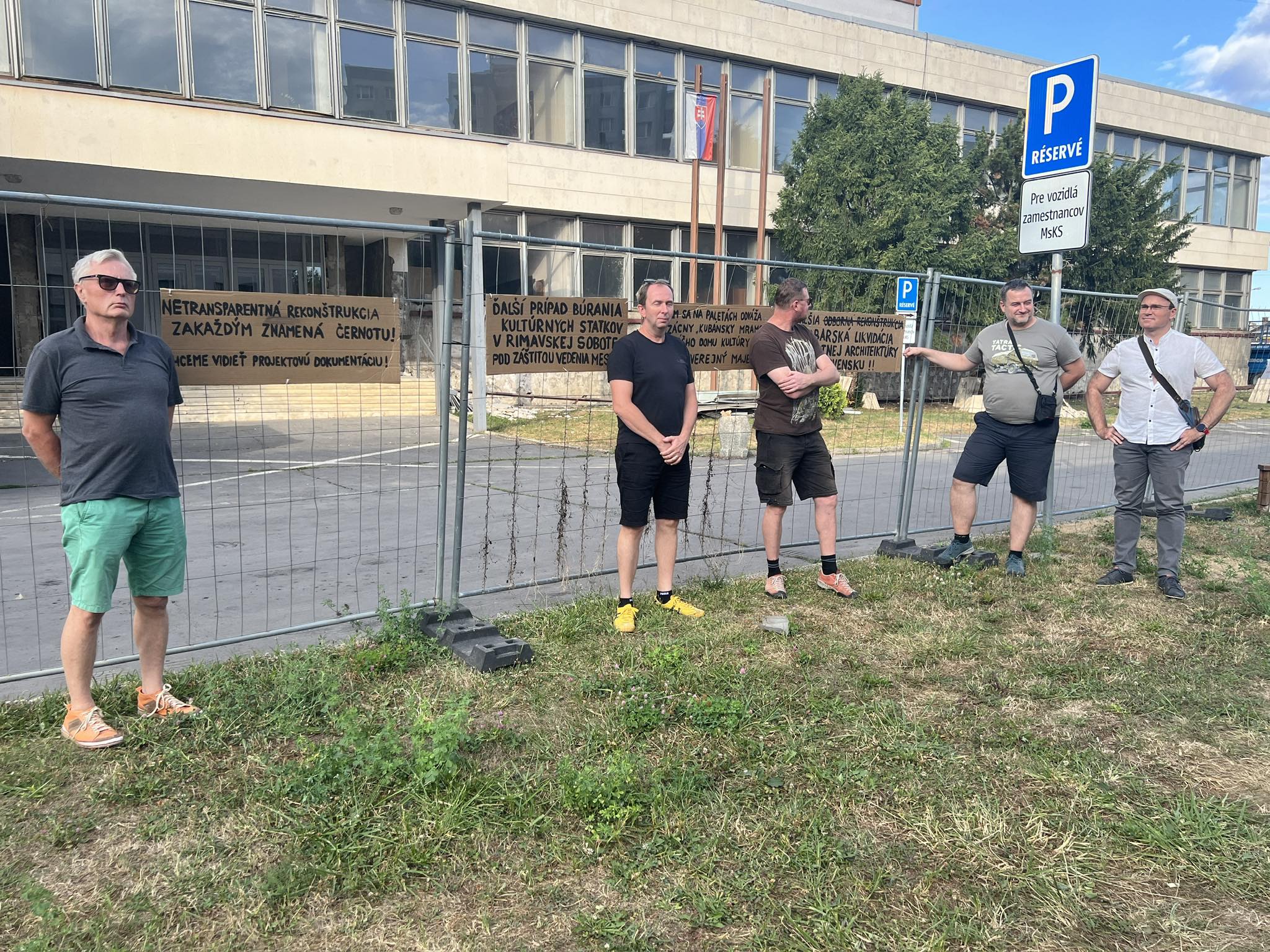 V utorok, 6. augusta, sa pred Domom kultúry stretli signatári listu, aby vyjadrili svoj nesúhlas s prebiehajúcou rekonštrukciou. Ingrid Kepková, vizuálna umelkyňa, ktorá inicializovala protestné zhromaždenie, uviedla: „Ľudia citlivo vnímajú rekonštrukciu domu kultúry v Rimavskej Sobote, ktorá je robená netransparentne. Keďže je to verejný majetok, je dôležité, aby sme mali informácie o tom, čo presne sa deje, aký je projekt. Som pohoršená, že sa likvidujú rôzne architektonické prvky, ktoré sú nenávratne zničené“ .