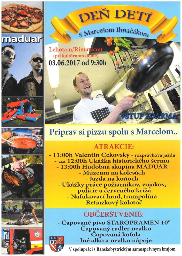 Rovnako aj v neďalekej Lehote nad Rimavicou je pre najmenších pripravený zaujímavý program. Pri tamojšom Kultúrnom dome si deti budú môcť pripraviť pizzu so známym kuchárom Marcelom Ihnačákom, pozrieť si ukážky práce hasičov, policajtov, vojakov i červeného kríža. Taktiež nebude chýbať hudba a spev. O to sa postará rimavskosobotská skupina Maduar. Do tretice si deti užijú zábavu aj v Klenovci, kde je pre nich pripravená Cesta rozprávkovým lesom. Okrem prechádzky po okolitej prírode sa vaše ratolesti môžu tešiť na stretnutie s rozprávkovými bytosťami i sladkú odmenu.