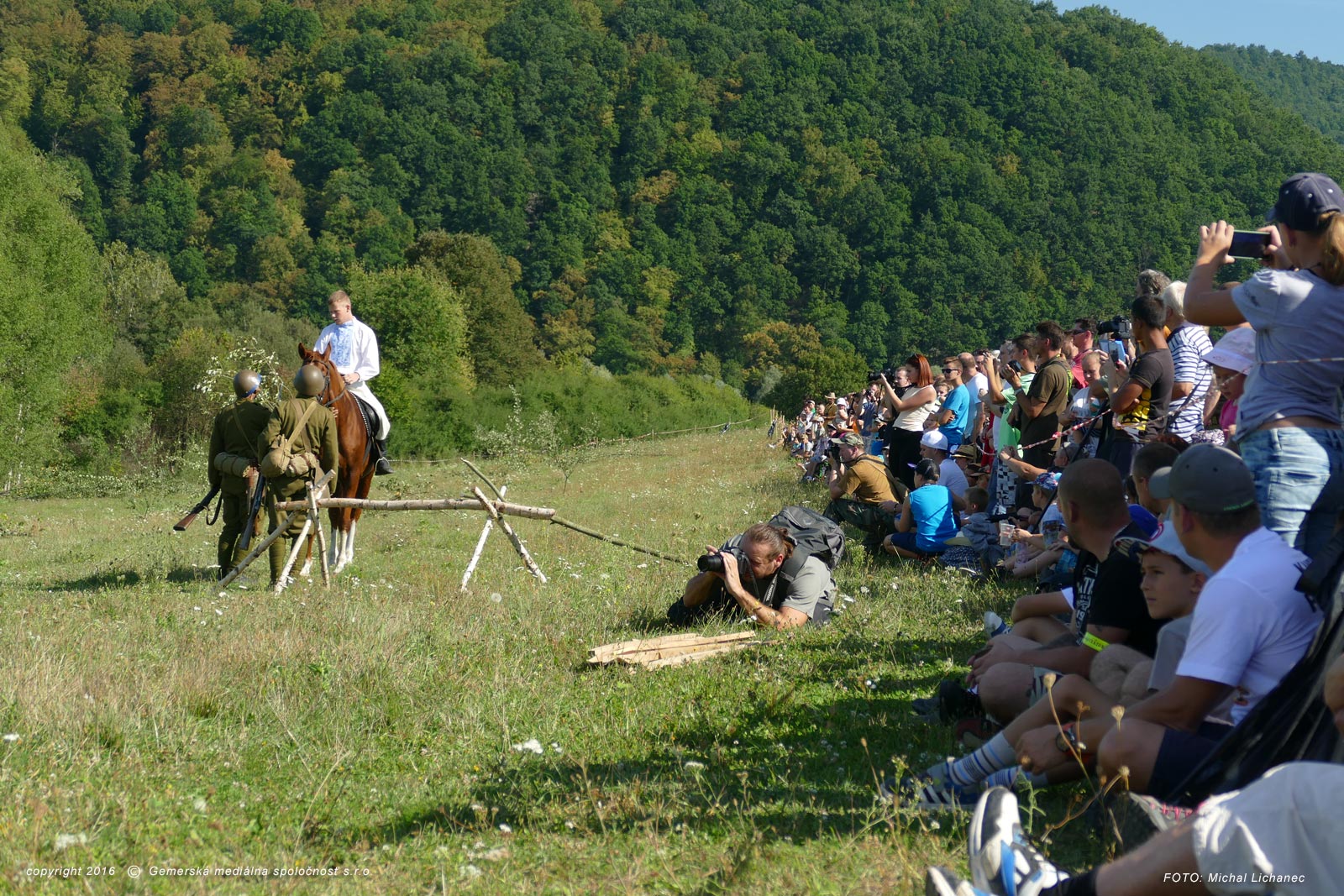 Významné miesto na kopci nad cestou v Rimavskej doline sa uplynulý víkend premenilo na centrum povstaleckých bojov. Podobne, ako tomu bolo pred viac ako 70 rokmi, kedy sa počas 2. svetovej vojny Slovenská povstalecká armáda postavila tej nemeckej na odpor. Prvý útok za pomoci partizánov sa im podarilo odraziť, potom však už nemecké vojská použili ťažkú techniku stíhač tankov Stug III. „V prvý deň bojov sa povstalci udatne bránili a nepriateľom kládli odpor čo okupanti neočakávali,“ priblížil udalosti z 19. až 21. októbra 1944 pamätník bojov Július Molitoris z Klenovca. Boje predviedli členovia z približne desiatich klubov vojenskej histórie na Slovensku. Výstrely zo zbraní a najmä z tanku bolo počuť aj v okolitých obciach. Ako počas prezentácie bojov odznelo, išlo teraz len o divadlo, ale vojak pred 19-tym októbrom 1944 musel myslieť na to, že tu bude bojovať proti presile, že bude v ohrození, pravdepodobne sa zraní a možno príde aj o život.