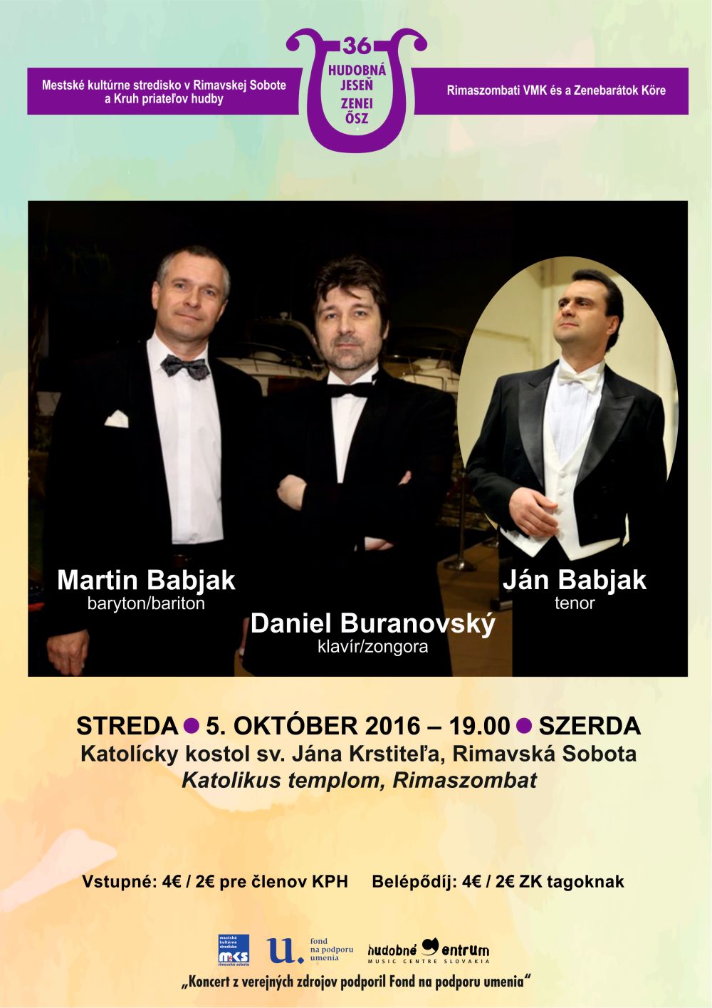 perex-dom-kulturyMestské kultúrne stredisko pripravilo na mesiac október bohatú nádielku. V Rimavskej Sobote privítame Babjakovcov, Mafiánske historky, medzinárodnú súťaž spoločenských tancov, módnu prehliadku, kino Orbis ponúkne dva filmové festivaly.Už túto stredu, 5. októbra, vystúpia v Rimavskej Sobote vynikajúci operní speváci Martin a Ján Babjak, ktorí sú neúnavnými propagátormi opernej respektíve dobrej hudby a interpretačného umenia. Ich nespočetné vystúpenia sú plné iskrivej energie, vrúcnosti, úprimnosti a pokory. Vynikajúcim dlhoročným partnerom speváckej dvojice je klavirista Daniel Buranovský. Koncert sa uskutoční o 19.00 hod. v Katolíckom kostole sv. Jána Krstiteľa. „V repertoári sa objavia známe skladby z operiet, operné melódie, náboženské i ľudové skladby,“ uviedla Regina Špitálová z MsKS a dodala, že vstupné je 4 euro / 2 euro pre členov KPH. Koncert je súčasťou 36. ročníka Hudobnej jesene v Rimavskej Sobote a uskutoční sa s finančnou podporou Fondu na podporu umenia. V rámci tohto cyklu vystúpi v závere mesiaca, 25. októbra o 19.00 hod. v Dome kultúry i zoskupenie mladých hudobníkov Cluster Ensemble s netradičným hudobným projektom Changing Parts.