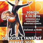 V sobotu, 8. októbra, sa po viac ako ročnej prestávke stane Dom kultúry miestom konania súťaže v tanečnom športe, kde si počas dňa zmeria sily v kategórii štandardných i latinsko-amerických tancov viac ako 100 párov z celého Slovenska i zahraničia. Sobotský tanečný parket 2016 prebieha počas celého dňa, od 10.00 hod. sa tu vystriedajú tanečníci od juniorov až po seniorov a tanečníkov s medzinárodnou triedou. Ako ďalej uviedla Špitálová, na súťaži sa predstaví i domáci pár z tanečného klubu Impulz, aktuálni majstri Slovenska do 21 rokov, Tomáš Baka a Orsolya Farkašová. Vstupné: 7 eur dospelí / 3 euro deti a dôchodcovia.