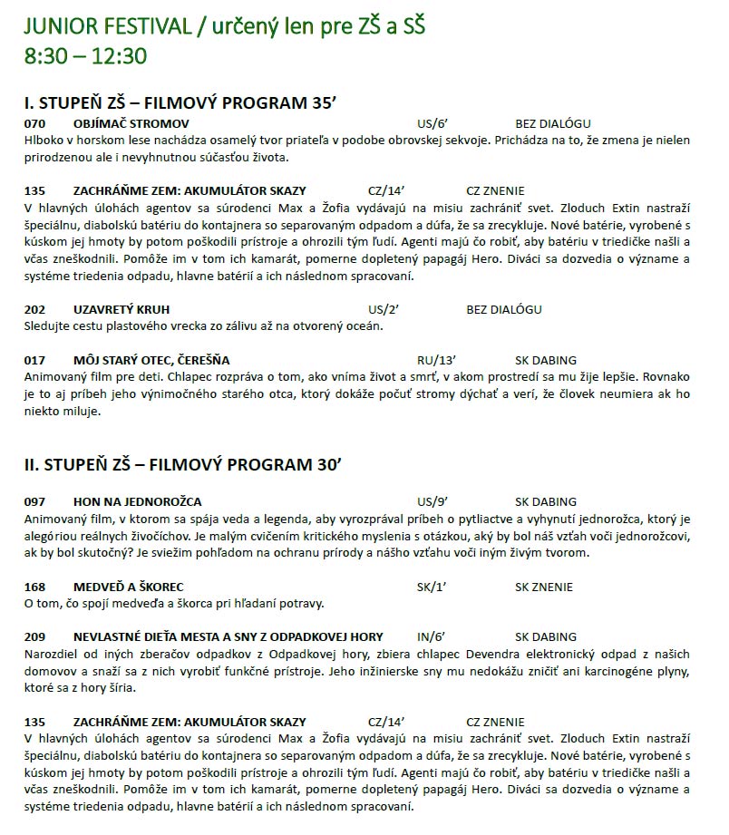 Vstup na festival je zadarmo. Viac info nájdete na: www.ekotopfilm.sk.