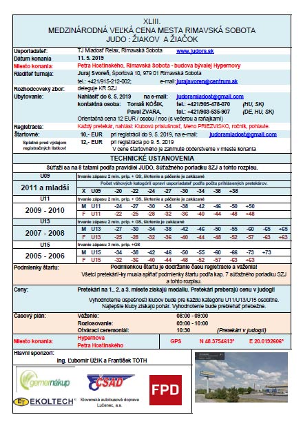 Bývalá budova Hypernovy na Ulici P. Hostinského v Rimavskej Sobote bude druhú májovú sobotu patriť prestížnemu medzinárodnému podujatiu. Na niekoľkých tatami si nielen domáci, ale aj zahraniční džudisti zmerajú svoje sily na 43. ročníku Medzinárodnej Veľkej Ceny mesta Rimavská Sobota.