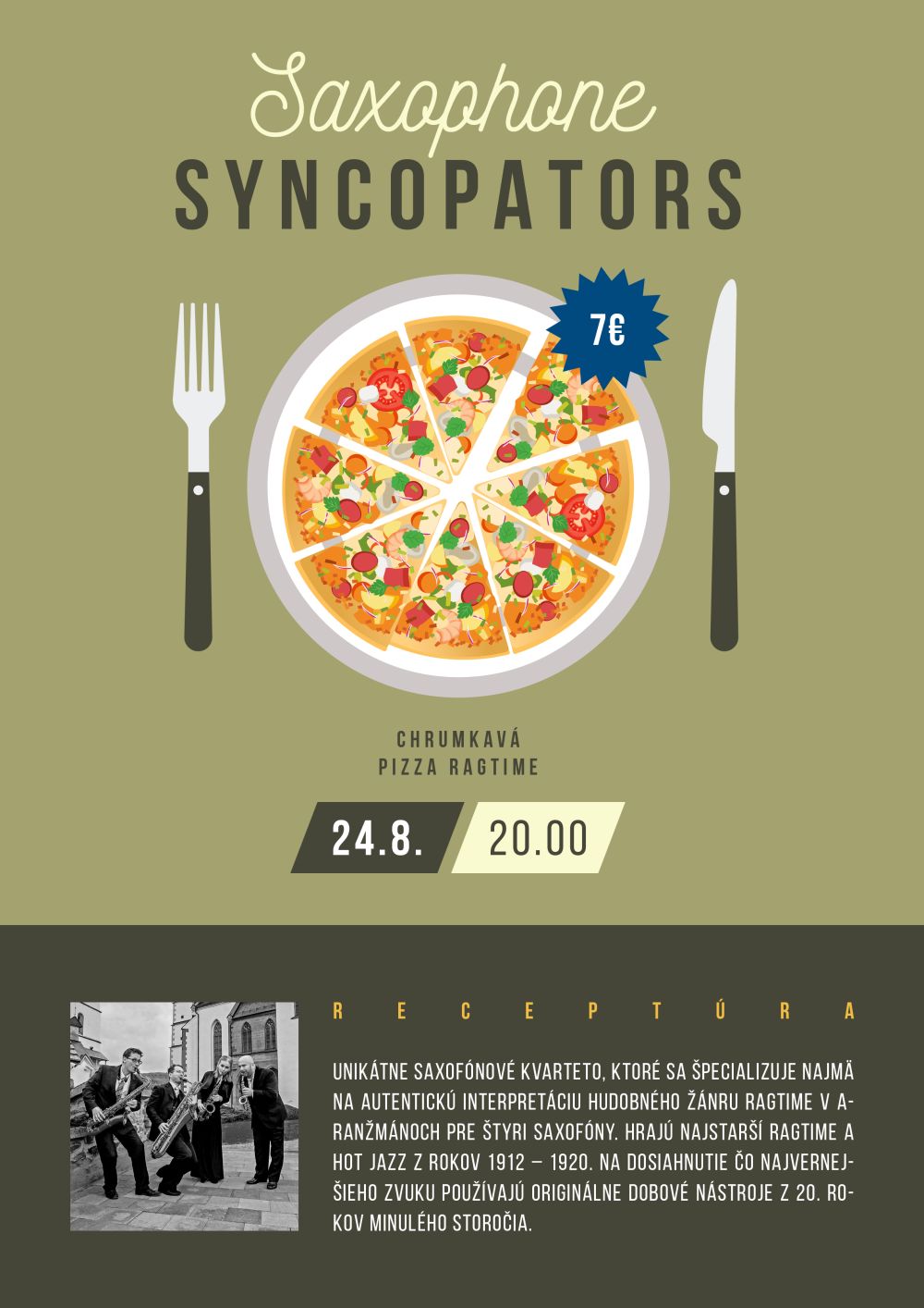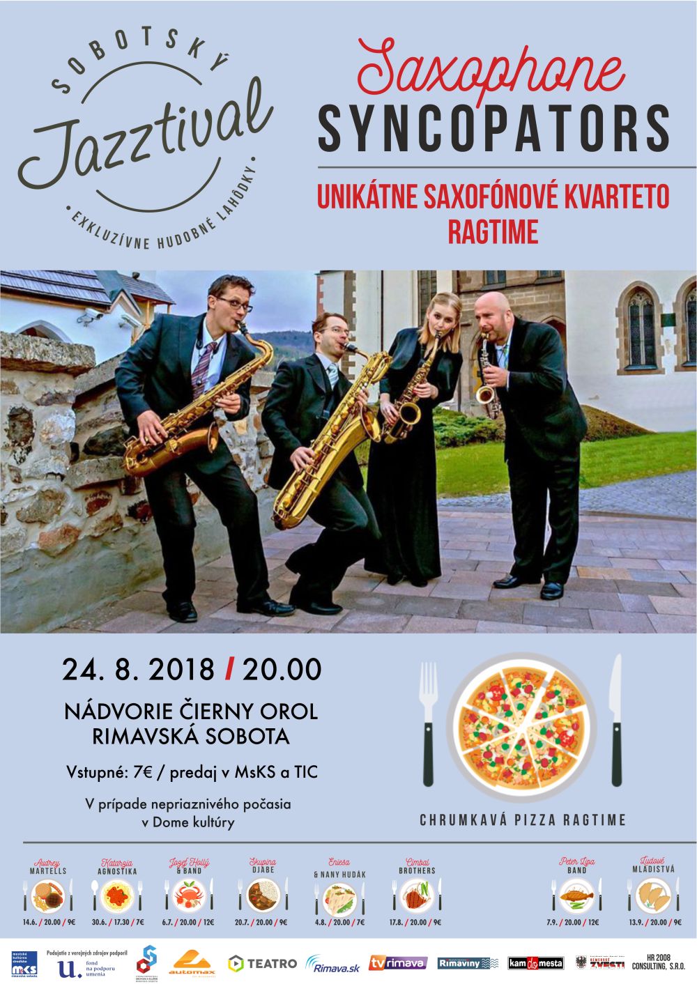 Najbližšie zavíta do Rimavskej Soboty ďalší piatok, 24. 8. unikátne saxofónové kvarteto Saxophone Syncopators, ktoré sa špecializuje najmä na autentickú interpretáciu hudobného žánru ragtime. Hrajú najstarší ragtime a hot jazz z rokov 1912 – 1920 v aranžmánoch pre štyri saxofóny. Na dosiahnutie čo najvernejšieho zvuku používajú originálne dobové nástroje z 20. rokov minulého storočia.