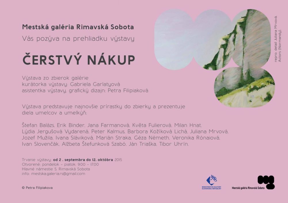 Druhou výstavou v októbri je podľa jej slov výstava zo zbierok Mestskej galérie pod názvom ČERSTVÝ NÁKUP. „Návštevníci ju môžu pozrieť od pondelka do piatka medzi 9-tou až 17-tou hodinou. Výstava potrvá do 12. októbra,“ uviedla.