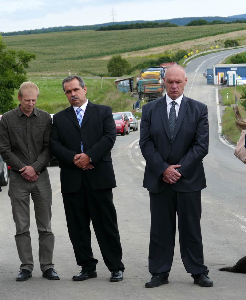 Mgr. Csaba Csízi (v strede) pri odovzdávaní zrekonštruovaného nehodového úseku Ružová osada