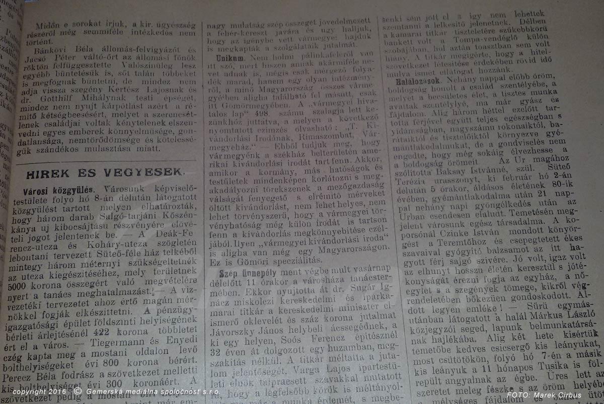 Ako pre Rimava.sk uviedla riaditeľka Gemersko-malohontského múzea (GMM) Oľga Bodorová, v Rimavskej Sobote vychádzalo v minulosti niekoľko novín. „Písalo sa v nich o rôznych udalostiach v meste, o spoločenských akciách, báloch či histórii ako aj pozvánky na rôzne podujatia,“ priblížila Bodorová, podľa ktorej formát vtedajších novín bol podstatne väčší. Spomedzi desiatok periodík, ktoré GMM uchováva vo svojej knižnici redakcia Rimava.sk vybrala niekoľko.
