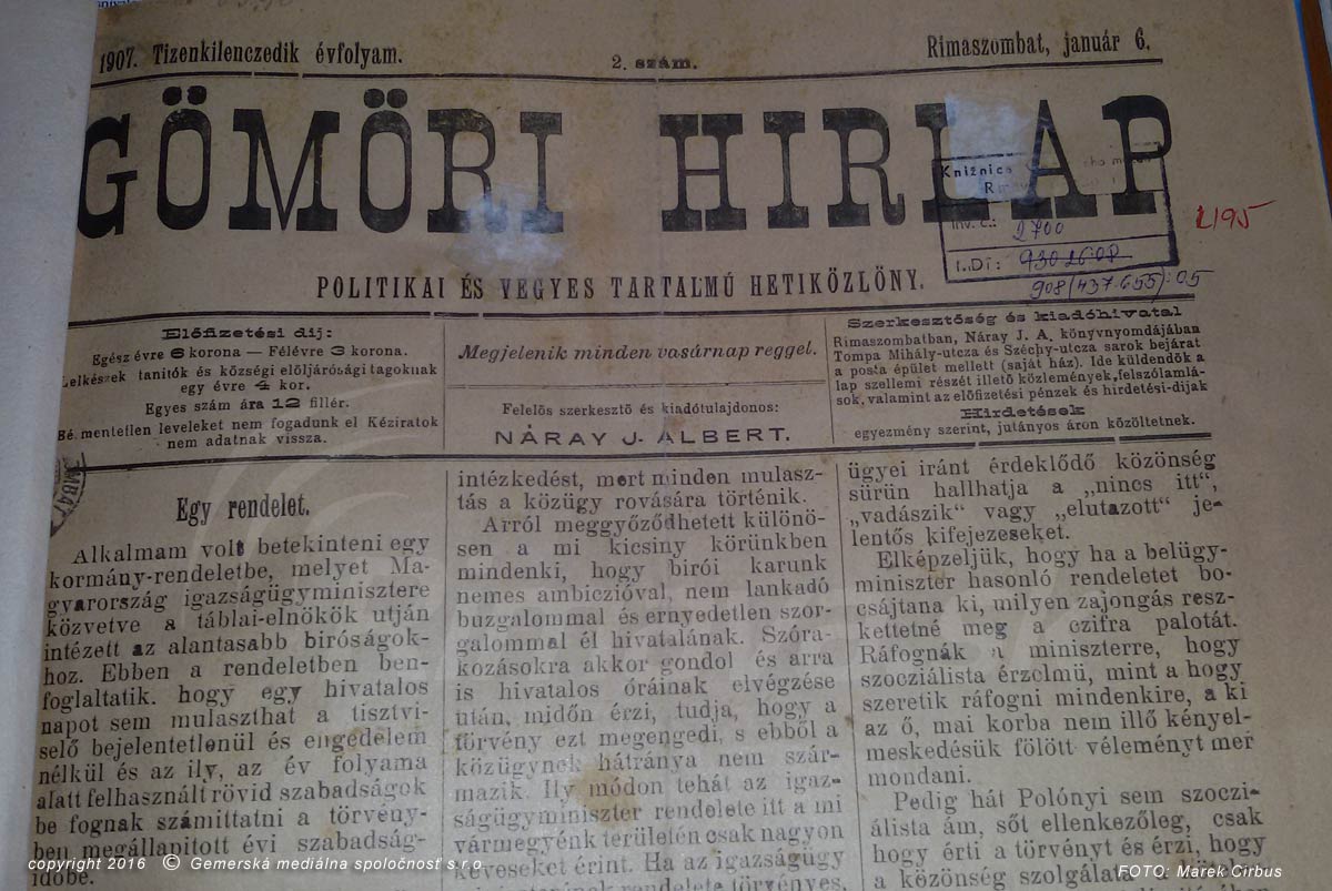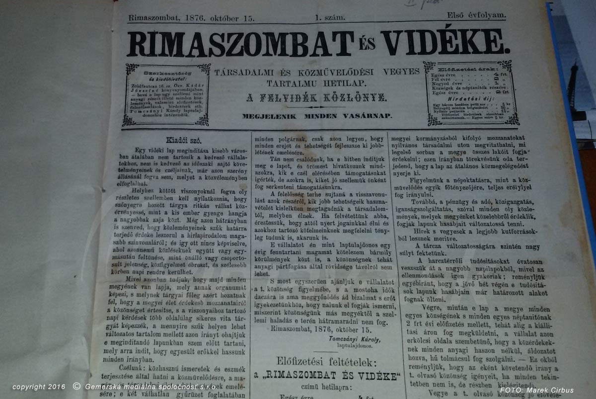 Medzi prvé noviny, v roku 1870, ktoré boli vydávané v Rimavskej Sobote bol maďarský týždenník Gömöri lapok (Gemerské listy). Ako ďalej Rimava.sk informovala knihovníčka GMM Iveta Krnáčová, vydavateľom bol Miklós Rábely, neskôr v roku 1935 Károly Rábely. Ďalším maďarským týždenníkom, ktorý vychádzal v 70. rokoch 19. storočia bol Rimaszombat és vidéke. S týždennou periodicitou ku koncu 19. storočia vychádzali aj noviny Gömör a začiatkom 20. storočia Gömöri ujság. Tieto periodiká však po niekoľkých vydaniach zanikli.