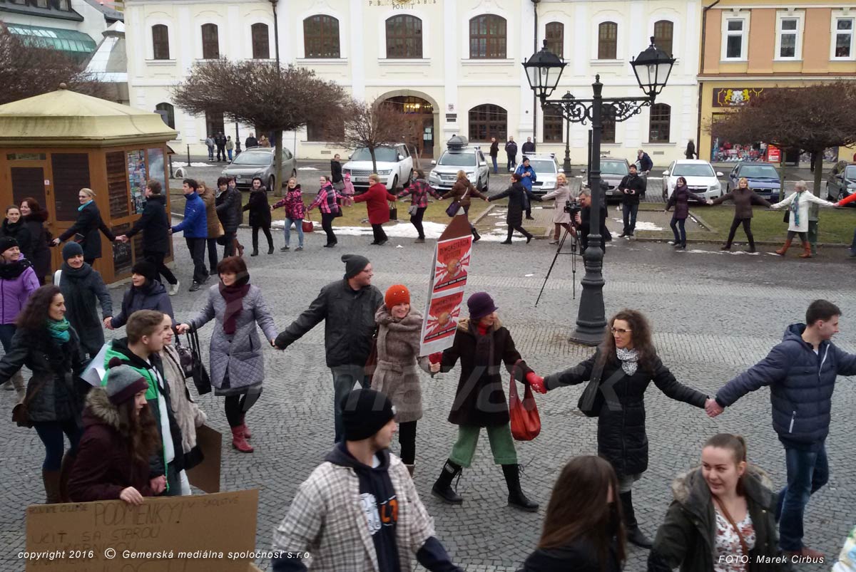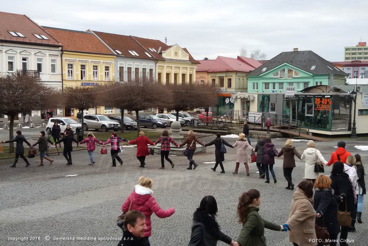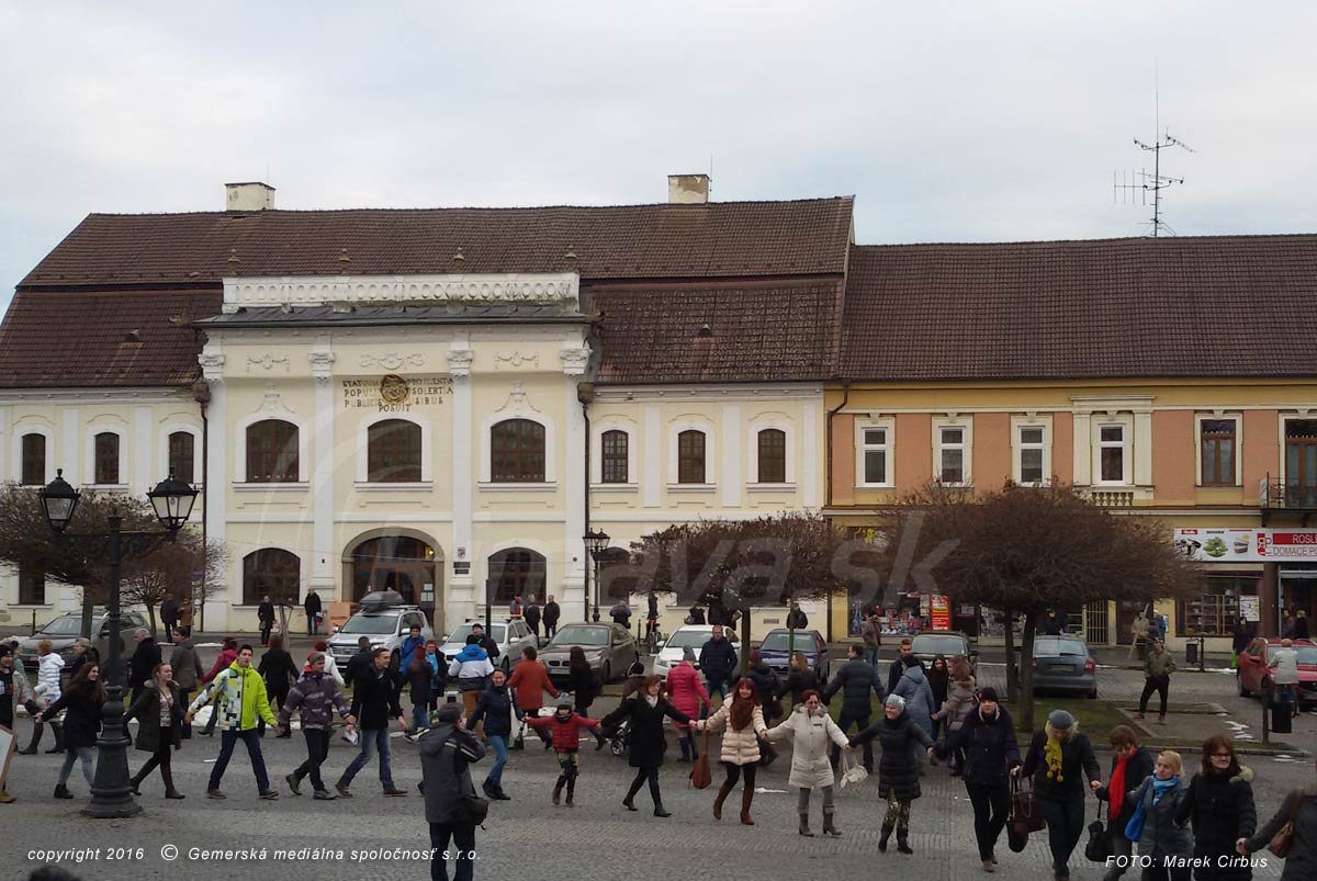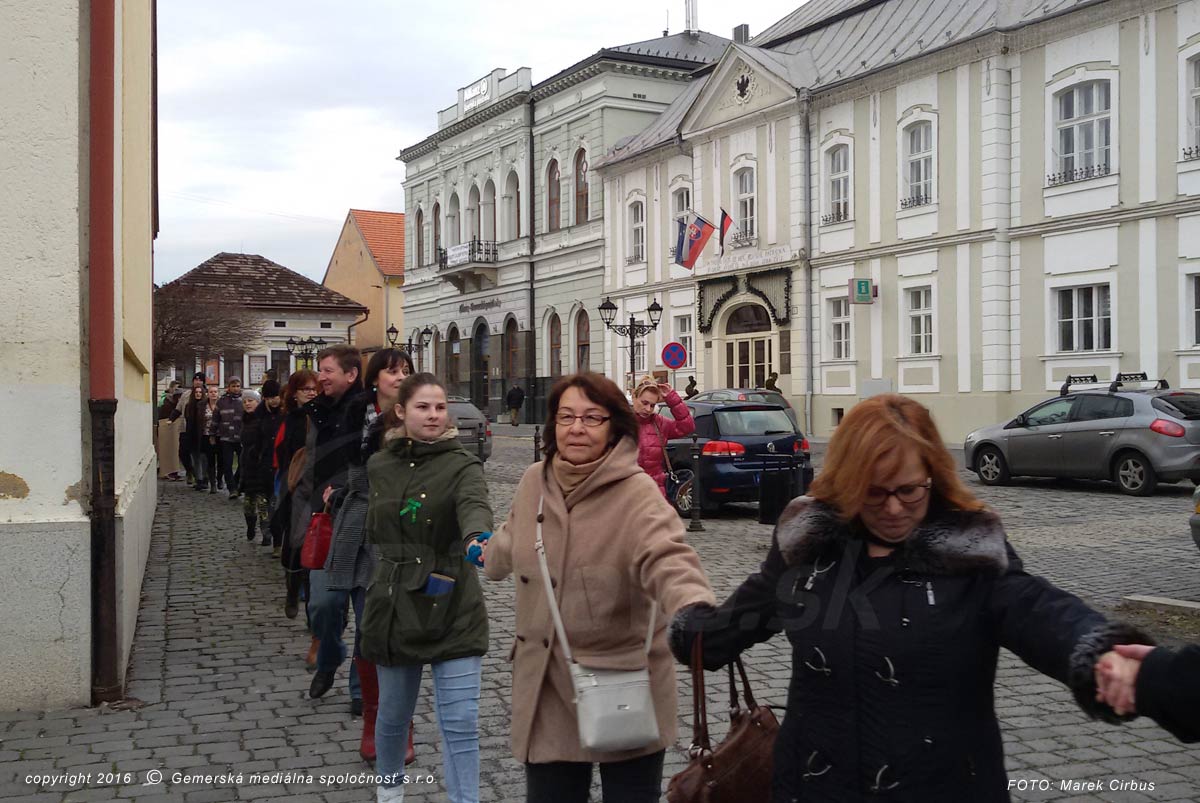 Učitelia, študenti či rodičia vytvorili dnes popoludní na rimavskosobotskom Hlavnom námestí živú reťaz. Takouto formou chceli ukázať svoju nespokojnosť v slovenskom školstve. Svojich štrajkujúcich kolegov z Gymnázia Ivana Kraska, Strednej odbornej školy obchodu a služieb (SOŠOS) a Základnej školy M. Tompu prišla podporiť aj riaditeľka z Evanjelického bilingválneho gymnázia v Tisovci Helena Pašiaková. Medzi prítomnými boli aj predstavitelia Rimavskej Soboty.
