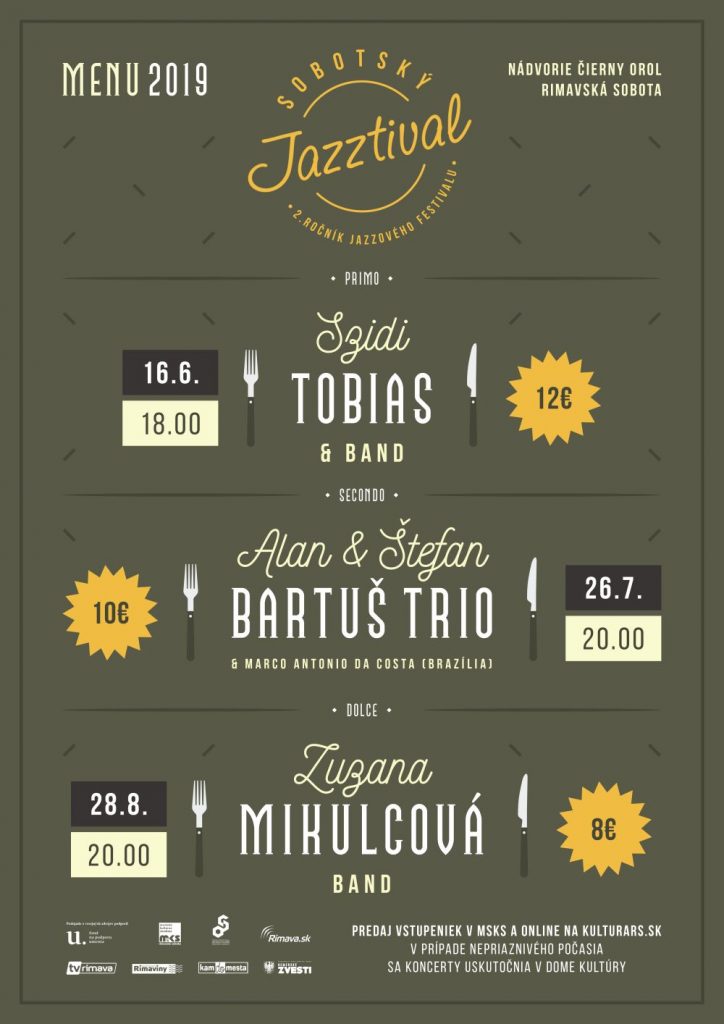 Trojicu džezových koncertov, ktoré v Rimavskej Sobote spríjemnia toto leto zaháji slovenská herečka a speváčka Szidi Tobias. Patrí k najvýraznejším hudobným osobnostiam spievaného šansónu nielen na Slovensku, ale aj v Českej republike. V rámci jazztivalu vystúpi s kapelou už túto nedeľu o 18.00 hod. na nádvorí Čierny orol na Hlavnom námestí. Jej umelecká charizma a špecifické zafarbenie hlasu sú kombináciou pre silný umelecký zážitok.