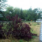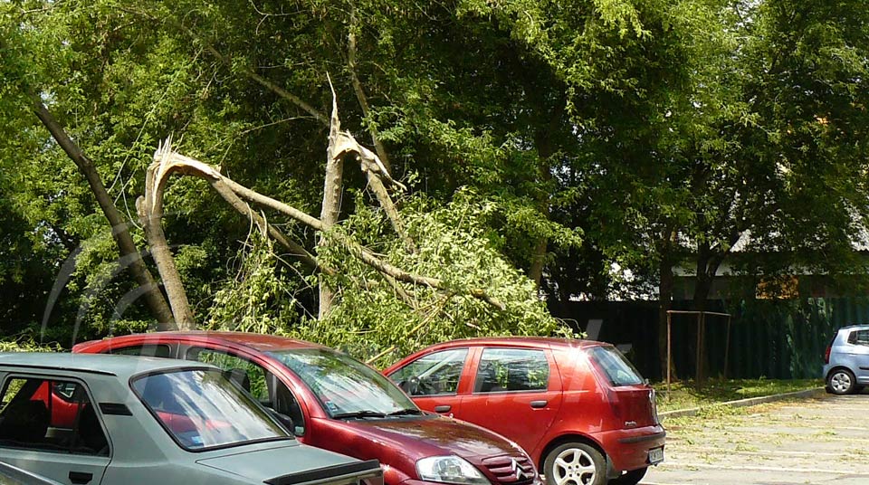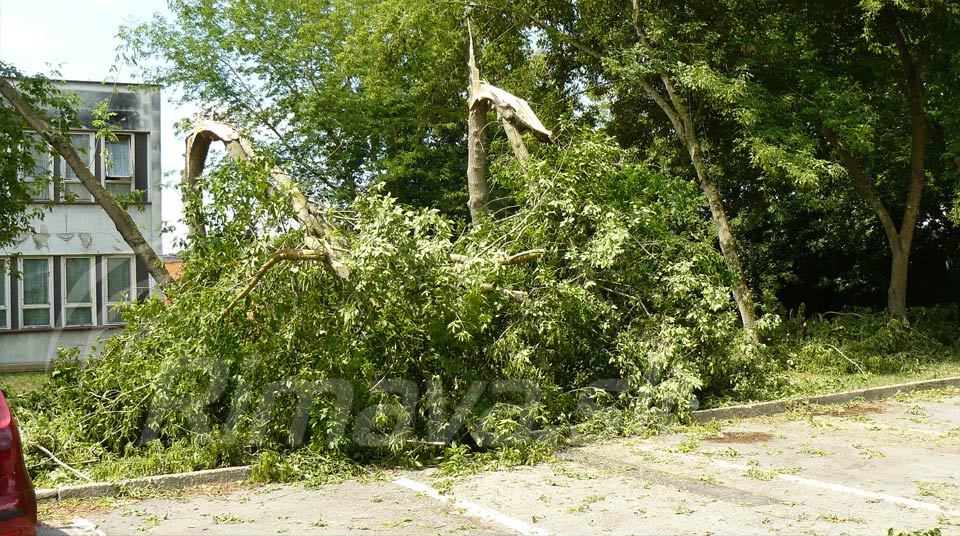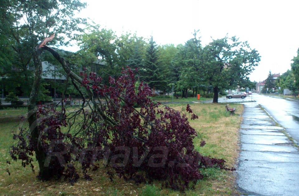 Rimavskou Sobotou sa po tropických dňoch prehnala búrka. Vietor polámal viacero stromov, niektoré padli aj medzi autá na sídliskách. Pri ich odstraňovaní už včera večer zasahovali hasiči na Malohontskej ulici a na Ul. Mikszátha. Ako ďalej Rimava.sk informoval Marek Laššák, riaditeľ OR HaZZ Rimavská Sobota, jeden z výjazdov smeroval aj na Ulicu L. Svobodu, kde bolo treba upevniť plechovú strechu bytovky. Od dnešného rána stromy a konáre v meste odstraňujú aj pracovníci Technických služieb mesta. Podľa riaditeľa TSM Tibora Barta, včerajšia krátka a rýchla búrka polámala veľa stromov v mestskej záhrade, na Kurinci aj v cintoríne. „Kvôli spadnutému konáru sa nedalo prejsť ani cyklocestou,“ spomenul Barto, podľa ktorého majú dosť roboty v celom meste, prioritne odstraňujú konáre a stromy v centre a na sídliskách. „Ľudia nám ešte stále oznamujú polámané stromy,“ povedal dopoludnia Barto.