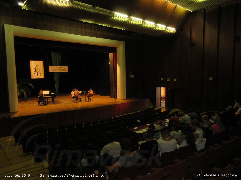 Rimavskú Sobotu ovládlo v uplynulých dňoch približne 200 inštrumentálnych muzikantov komornej hudby z celého Slovenska, ktorí sa predviedli pred päťčlennou odbornou porotou. Tá v priebehu piatka a soboty, 19. septembra, v rámci 27. ročníka celoštátnej súťaže a prehliadky neprofesionálnej komornej hudby Divertimento musicale 2015 zhodnotila celkovo trinásť súťažných telies. „Je úžasné, že napriek pretechnizovanému a prekomercializovanému svetu, si vedia tie deti nájsť čas a pedagógovia ich dokážu strhnúť a motivovať k hraniu,“ povedal predseda poroty Pavol Tužinský, ktorý je zároveň dirigentom, pedagógom a organizátorom hudobného života. Ako ďalej spomenul, zmyslom tohto prekrásneho podujatia je nielen prezentovať sa, ale spoznávať nových ľudí, rozširovanie obzorov, podpora muzicírovania a hlavne zušľachťovanie ľudského ducha prostredníctvom hudby. „A tento vklad budú títo mladí ľudia ďalej rozdávať a obohacovať ním budúceho poslucháča hudby a opery.“ podotkol.