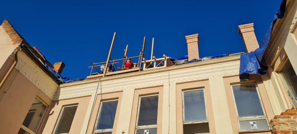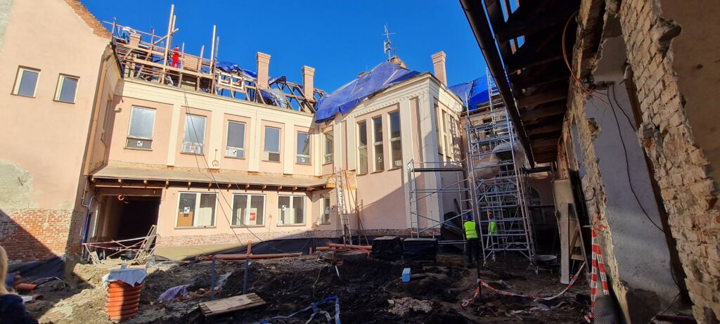 Pracuje sa na viacerých častiach budovy paralelne – robotníci sú nasadení na fasáde, kde prebieha reštaurovanie historických prvkov, ako aj na streche, dvore a interiéri budovy. Významnou súčasťou rekonštrukcie je aj zavádzanie nových inštalácií, ktoré zabezpečia moderný technický štandard budovy.