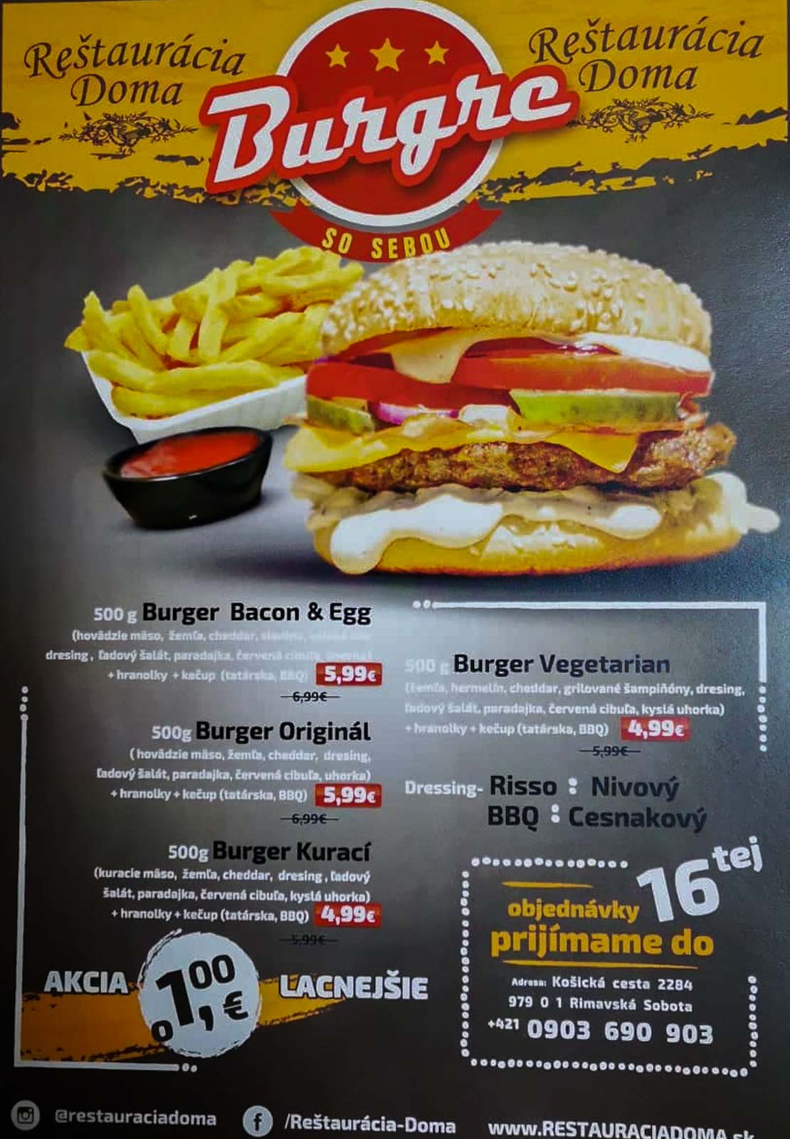 V Reštaurácii Doma na Košickej ceste v R. Sobote si najnovšie pochutnáte aj na burgroch. Dovezú vám ich rovno domov. Zareagovali tak na dopyt a reakcie zákazníkov, ktorí si chcú pochutnať na fajnom burgri. Ich počty pribúdajú.