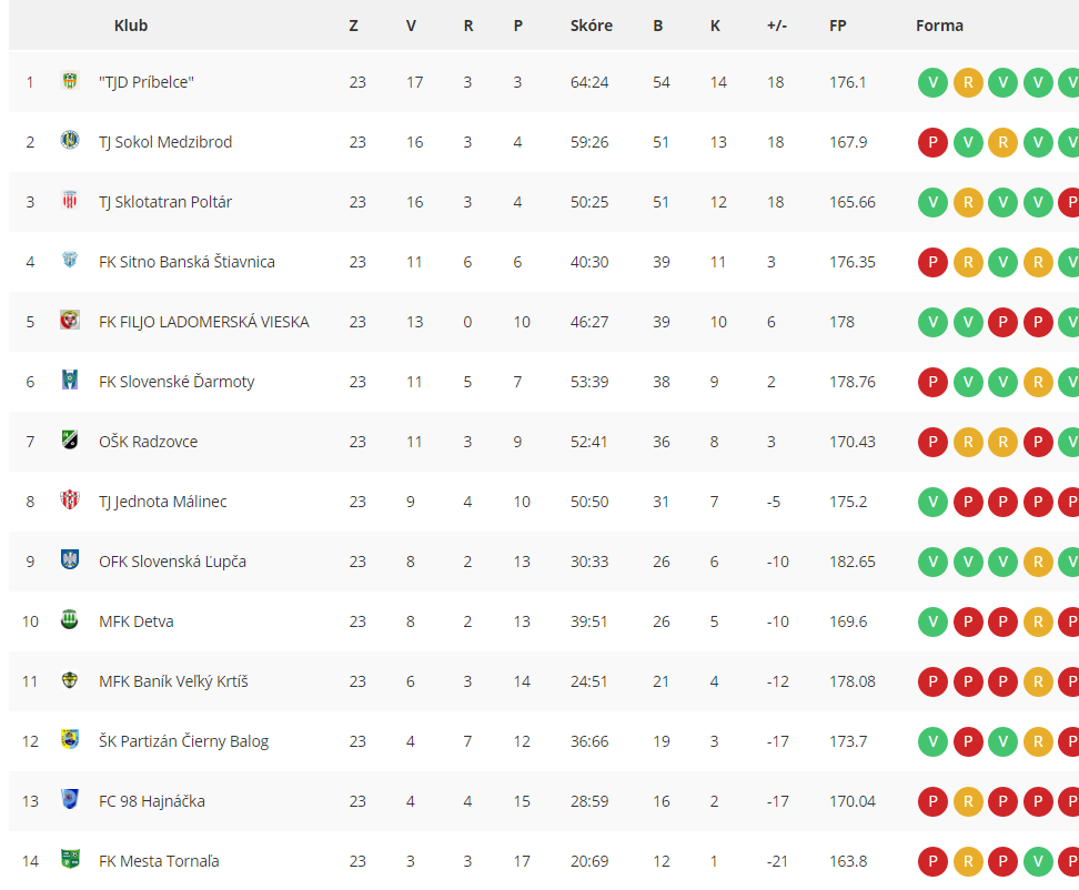 Ostatné výsledky: Slovenské Ďarmoty - Ladomerská Vieska 0:3, Slovenská Ľupča - Veľký Krtíš 1:0, Málinec - Radzovce 6:2, Príbelce - Medzibrod 2:1, Banská Štiavnica - Poltár 0:2.