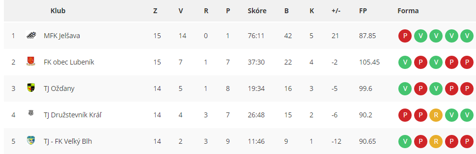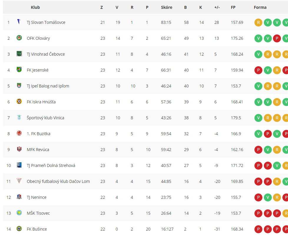 Ostatné výsledky: Dolná Strehová - Balog nad Ipľom 1:4, Dačov Lom - Vinica 2:3, Tomášovce - Bušince (nehralo sa).