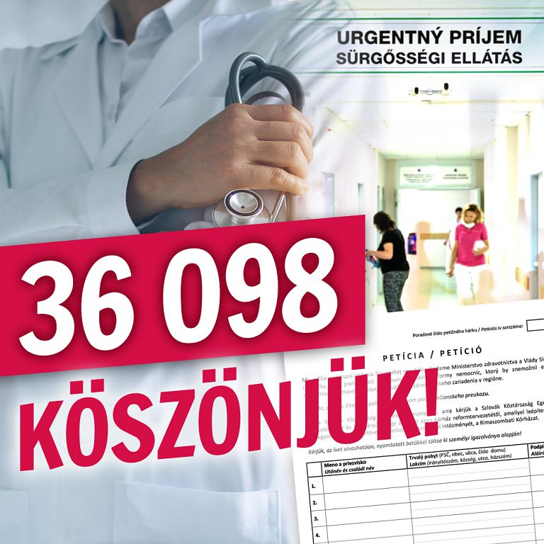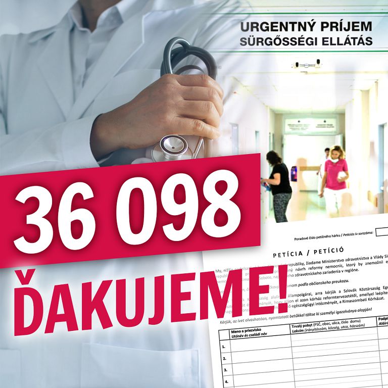 RIMAVSKÁ SOBOTA – Petičný výbor, organizujúci petíciu za zachovanie rimavskosobotskej nemocnice a prehodnotenie pripravovanej reformy zdravotníctva, už odovzdal príslušné hárky s viac ako 36 000 podpismi ministerstvu zdravotníctva. Rimava.sk o tom informoval člen petičného výboru Zoltán Cziprusz.