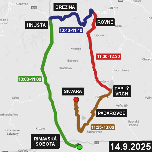 Cyklisti sa postavia pred výzvu v podobe 69,5 km dlhej trate. Z Rimavskej Soboty sa vydajú po ceste I/72 do Hnúšte, pokračovať budú cez sedlo Brezina, kopec Poproč a dolinu Alúviom Blhu. Trasa povedie aj v okolí Teplého Vrchu a Padaroviec, pričom za Nižnou Pokoradzou odbočí smerom na Vyšnú Pokoradz. Cieľ čaká na vrchole Škvára, ktorý je tradičným záverečným stúpaním.