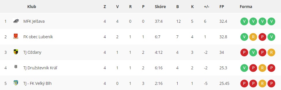 Ostatné výsledky: Príbelce - Poltár (preložený), Slovenské Ďarmoty - Veľký Krtíš 3:1, Málinec - Medzibrod 5:1, Radzovce - Hajnáčka 1:0, Čierny Balog - Ladomerská Vieska 0:3, Slovenská Ľupča - Detva 1:3.