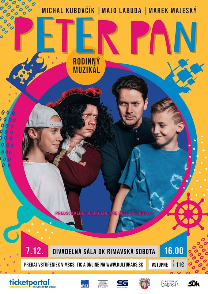 "Vo všetkých ôsmych mestách, si deti muzikál Peter Pan užívali plnými dúškami. Nadšené výrazy pri svetelných efektoch, vyskakovanie zo stoličiek v napínavých scénach, spievanie pesničiek spolu s hercami a obrovský potlesk. To sú tie dôvody, pre ktoré toto predstavenie robíme s láskou. Soboťania, tak ho nezmeškajte a zoberte svoje deti do divadla," avizujú organizátori. Vstupné je 11 eur, zarezervovať si svoje miest môžete aj dopredu, predaj už tradične v MsKS aj online na www.kulturars.sk.