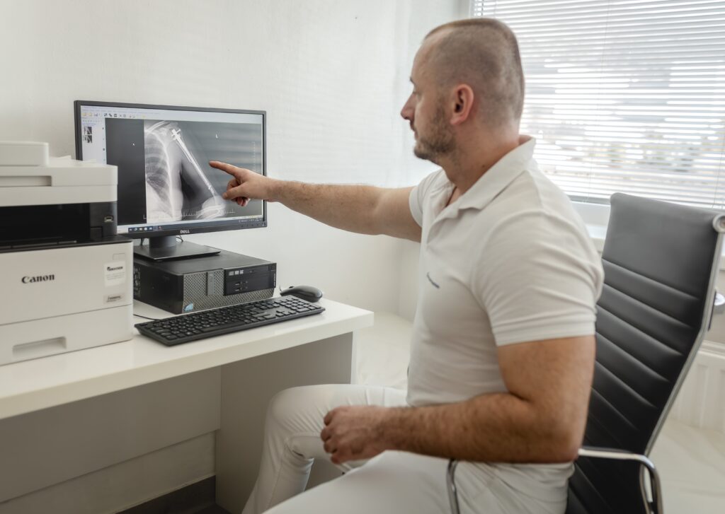 „Vzhľadom na typ zlomeniny sme sa rozhodli, že pacientka je vhodná práve na použitie tohto implantátu. Do ramennej kosti bol zavedený titánový klinec, ktorý zlomeninu stabilizuje pomocou fixačných skrutiek. Tento postup umožňuje pevné zafixovanie kosti, minimalizuje pohyb v mieste zlomeniny a podporuje prirodzený proces hojenia,“ vysvetlil lekár chirurgického oddelenia MUDr. Tibor Varga.