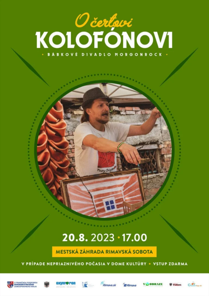 RIMAVSKÁ SOBOTA – Marionetová dobrodružná komédia O čertovi Kolofónovi je potešením pre malých aj veľkých divákov. Mix čertovských rozprávok, ľudových rozprávok, popkultúry, divokého západu a romantických komédií je receptom na neopakovateľnú zábavu v spoločnosti klasických marionetových bábok.
