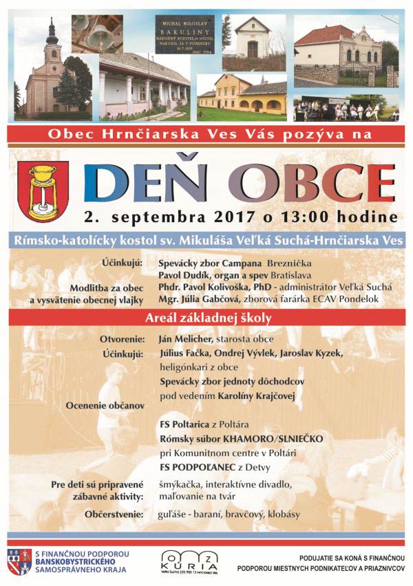 Sobota, 2. septembra, bude v obci Kociha patriť podujatiu Rozlúčka s letom. Pripravené sú súťažné hry pre deti spolu s rodičmi či športové popoludnie na dvore Kultúrneho domu i detskom ihrisku. V ten istý deň (2. septembra) bude však veselo aj v Hrnčiarskej Vsi, kde oslávia Deň obce. O zábavu sa postarajú folklórne súbory ako Poltarica z Poltára, Podpoľanec z Detvy či Rómsky súbor Khamoro/Slniečko v Poltári. Medzi účinkujúcimi bude aj Spevácky zbor Campana z Brezničky či Pavol Dudík z Bratislavy, ktorý sa predstaví svojím spevom a hrou na organe. Nebude chýbať baraní a bravčový guľáš či klobásy. Rovnako aj deti sa zabavia na šmýkačke, interaktívnom divadle a zamaskovať sa môžu maľovaním na tvár.