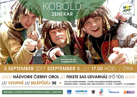 Posledný prázdninový deň (nedeľa, 3. septembra) bude prevažne patriť deťom. Na nádvorí Čierneho orla v Rimavskej Sobote si tunajšie Mestské kultúrne stredisko pripravilo koncert kapely Kobold. Jej repertoár tvoria detské pesničky s vtipnými textami určené pre každú vekovú skupinu. Zväčša ide o zhudobnené básne, ale v jedinečne odvážnom spracovaní aj také známe skladby, akými sú Iskolatáska (Školská taška), Kiskarácsony, Trabant a mnoho ďalších. Vstupné: 5 € (Rodinný lístok: 20 € = 2 dospelí + 3-5 detí. Deti do 2 rokov zdarma.).