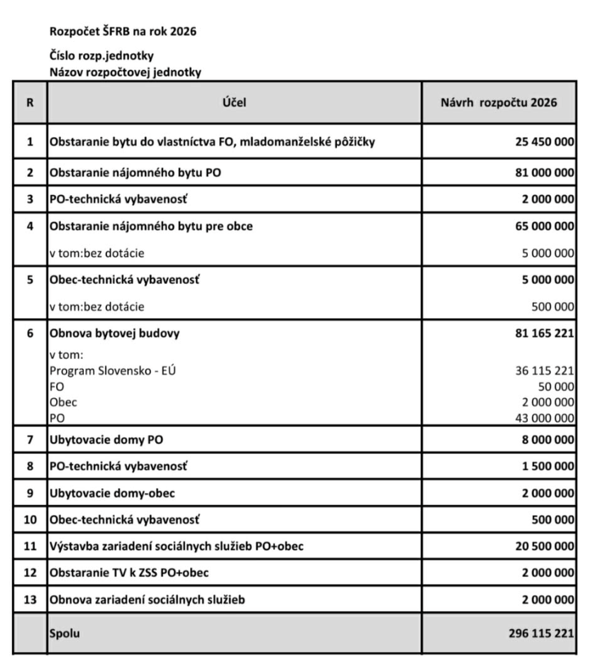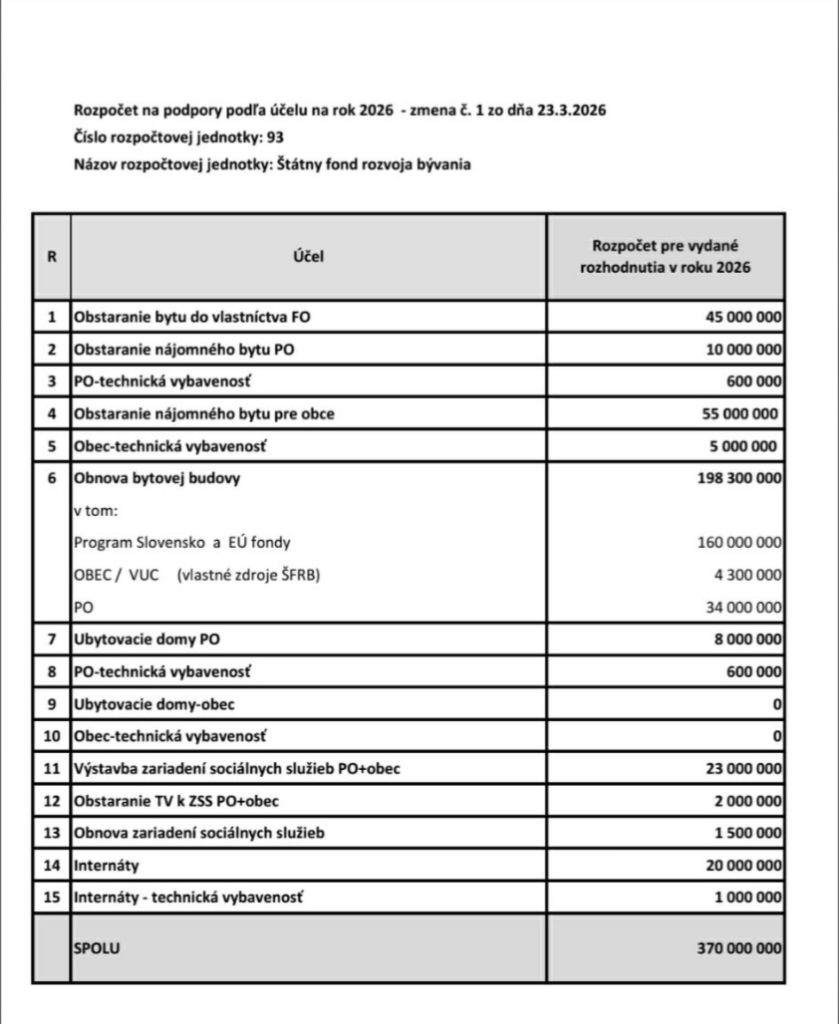 Roman Vaľo však upozornil na aktuálnu situáciu v ŠFRB. Podľa jeho slov bolo na začiatku roka na tento účel vyčlenených 81 miliónov eur, no od marca je k dispozícii len približne 10 miliónov eur. „Ja tiež podporujem prebudovu zo ŠFRB, vy ale chcete, aby sa objekt predal nejakému dodávateľovi a potom ho spätne kúpime, vzhľadom na tú malú výšku alokovaných penazí nie je pravdepodobné že to dokážeme odkúpiť naspäť," skonštatoval.
